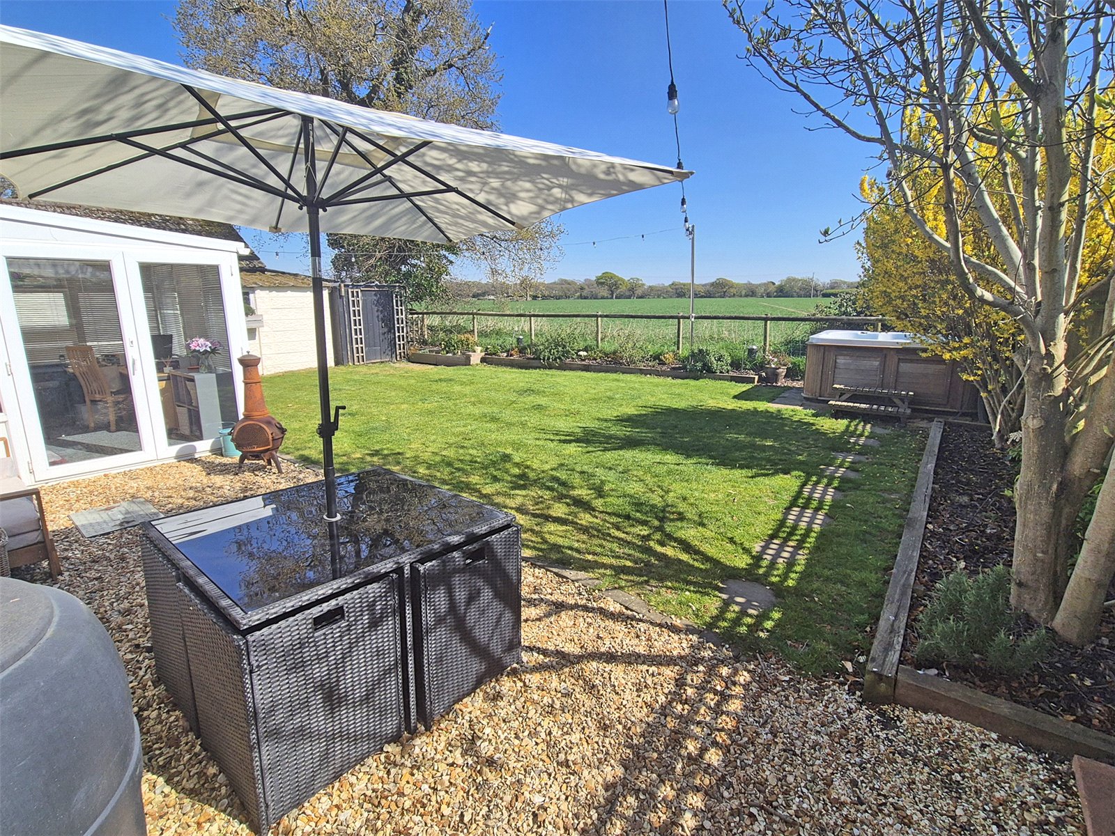 Entrance porch through to entrance hall, sitting/dining room, kitchen, side utility porch, two bedrooms, bathroom/w.c., rear conservatory, detached garage/store, excellent sized frontage providing ample off -parking with space for boat/caravan, established gardens to the rear, backing onto farmland.