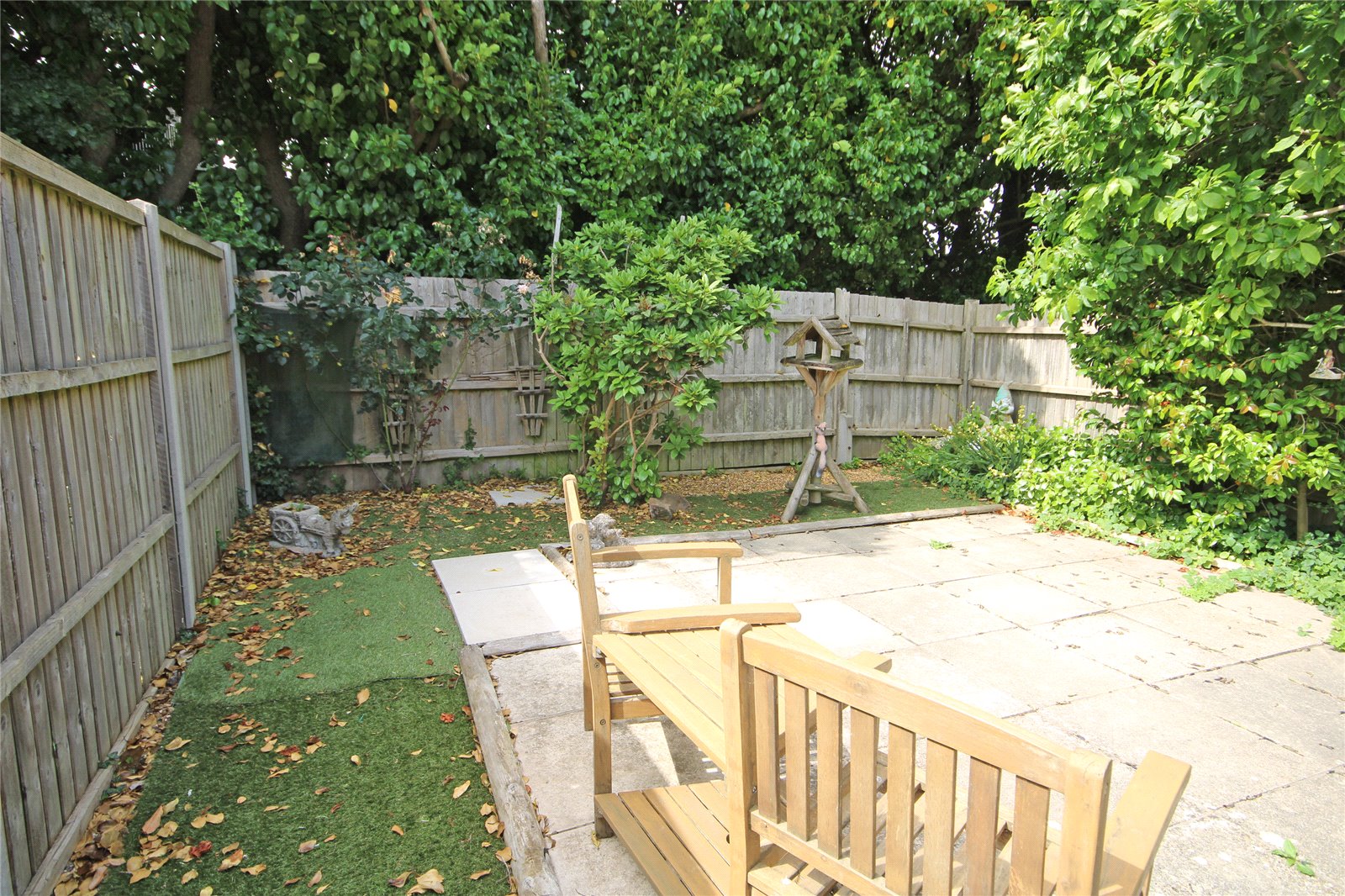 which has been paved for ease of maintenance with further astroturf, all enclosed by fencing, benefiting from a good degree of privacy.