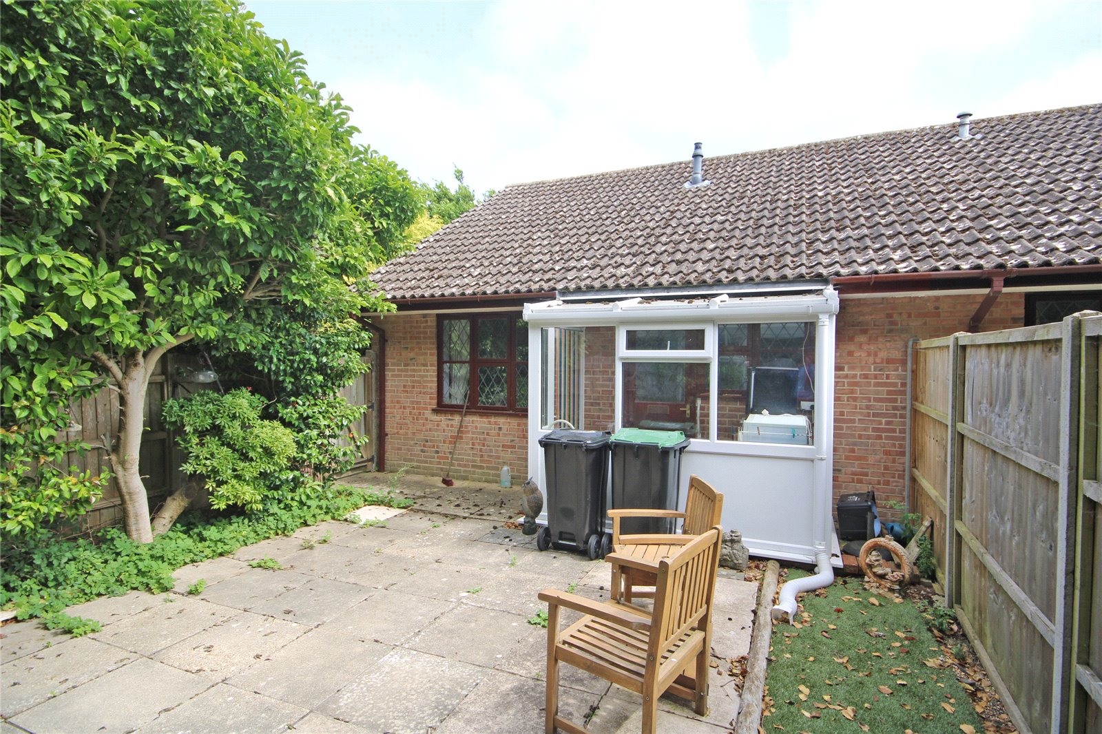 Being offered for sale chain free and well appointed at the end of a no through road, a two bedroom end terrace bungalow with secluded rear garden and garage in nearby block with further allocated parking space. An early inspection is highly recommended.