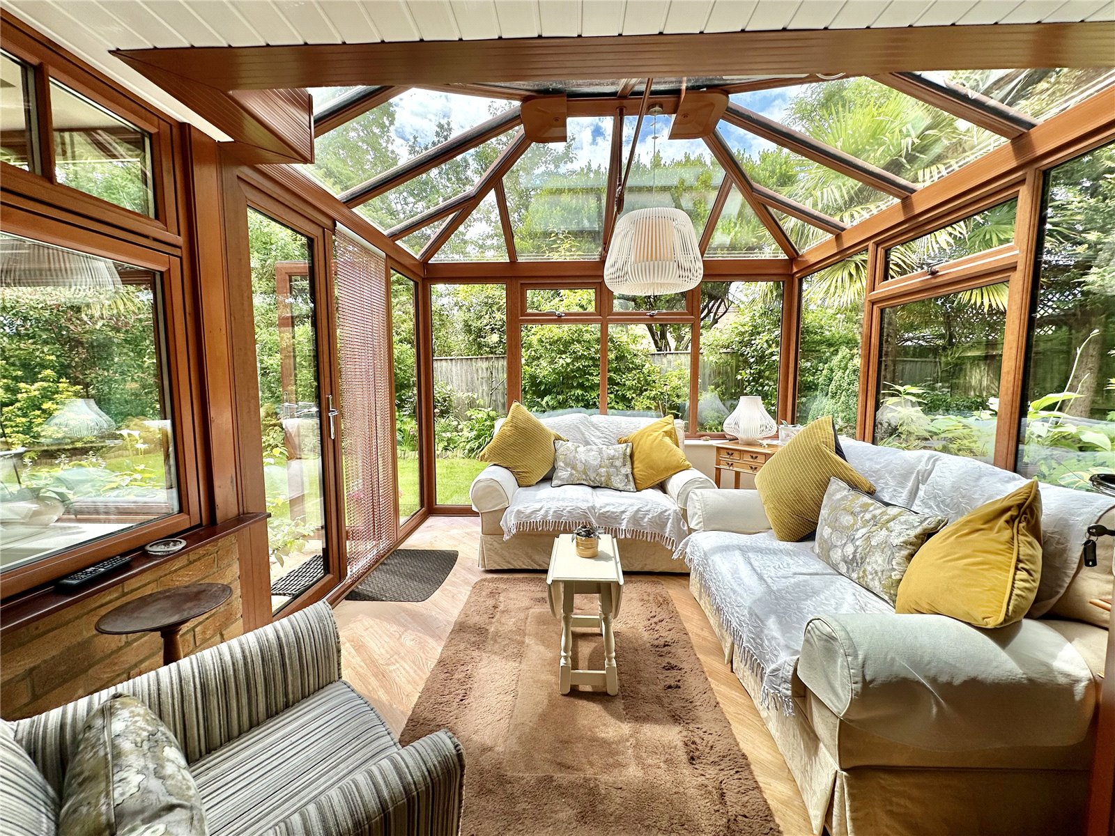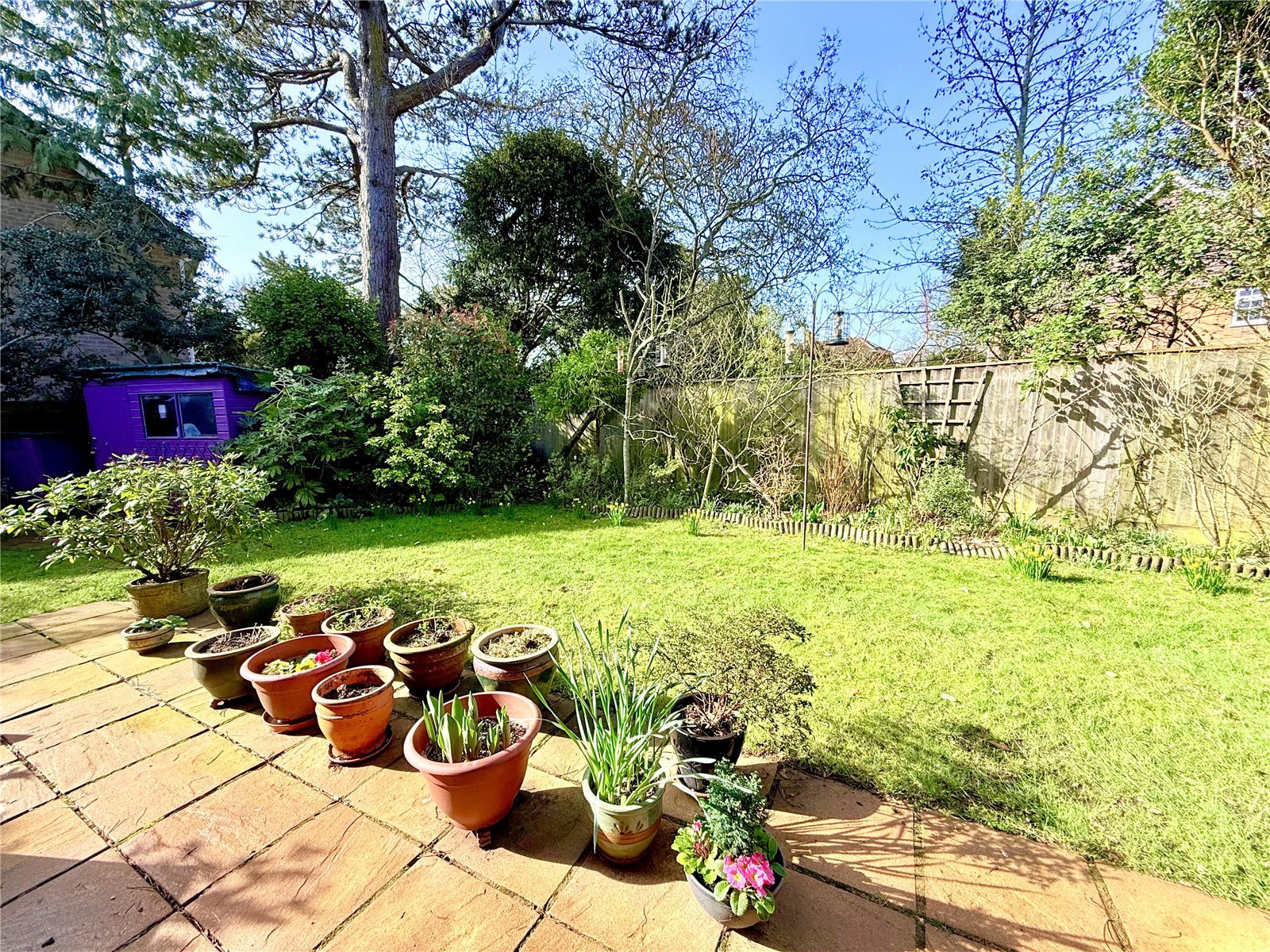 An attractive feature of the property providing complete privacy and being on the south and west side, flanked by mature trees with established beds and borders, there is a terrace adjacent to the property with lawn beyond, Timber Garden Shed.
