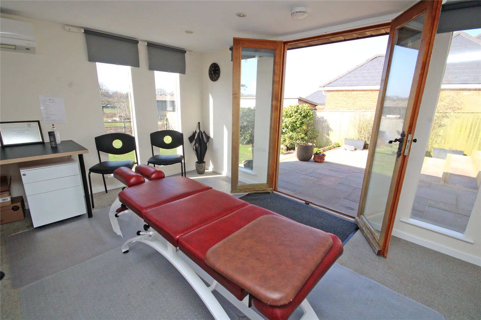 Recessed log burner, wood flooring, radiator, UPVC double glazed window overlooking side aspect, further bi-folding doors to: