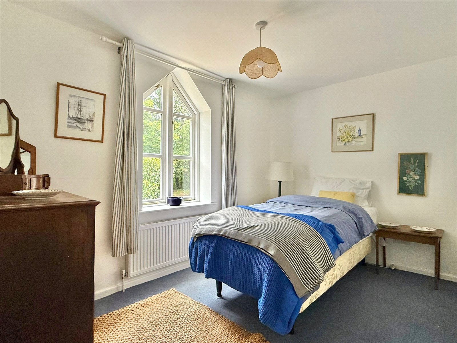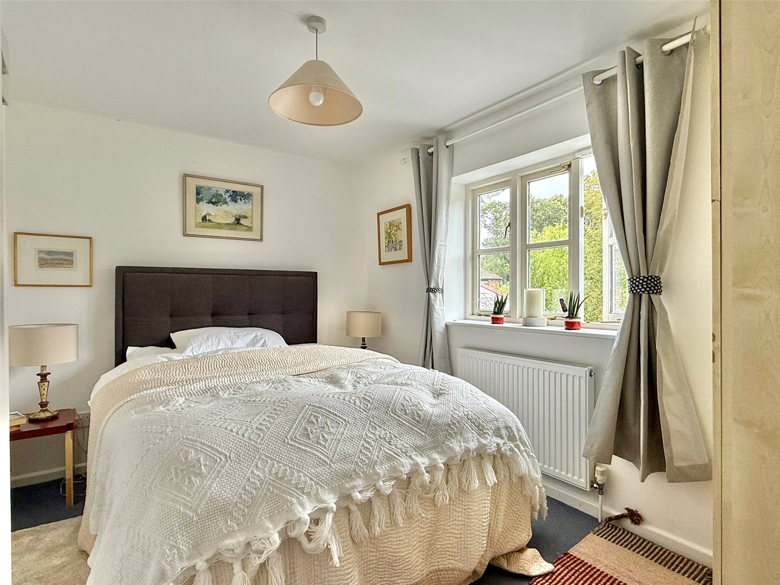 Sealed unit double glazed bay window and further side aspect windows, central heating radiator, ceiling light point