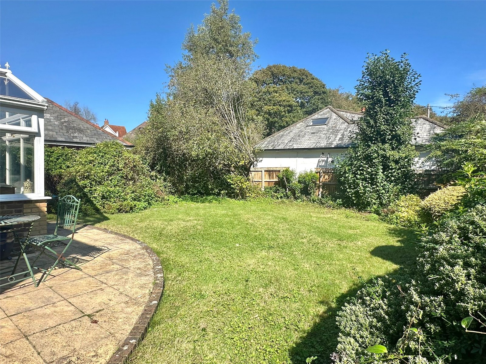 A gravel driveway leads to the front approach providing plenty of off street parking and access to the front entrance and the garage. The front garden has deep mature shrub/specimen tree borders and boundaries along with panel fenced side boundaries. The rear garden accessed from the conservatory and the utility room has an area of paved terrace immediately adjacent to the conservatory leading onto an area of lawn with deep mature shrub/specimen tree borders and fenced boundaries. Pedestrian side access gates on either side, outside cold water tap