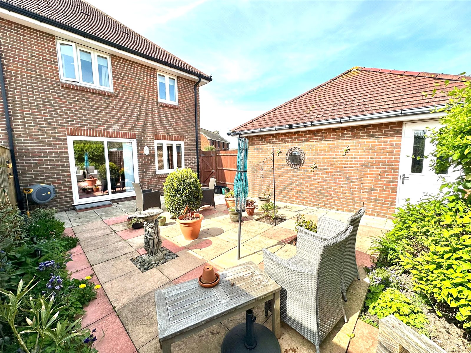 An end of terrace three bedroom house with easy maintenance garden, driveway and garage, superbly located between the village high street and seafront