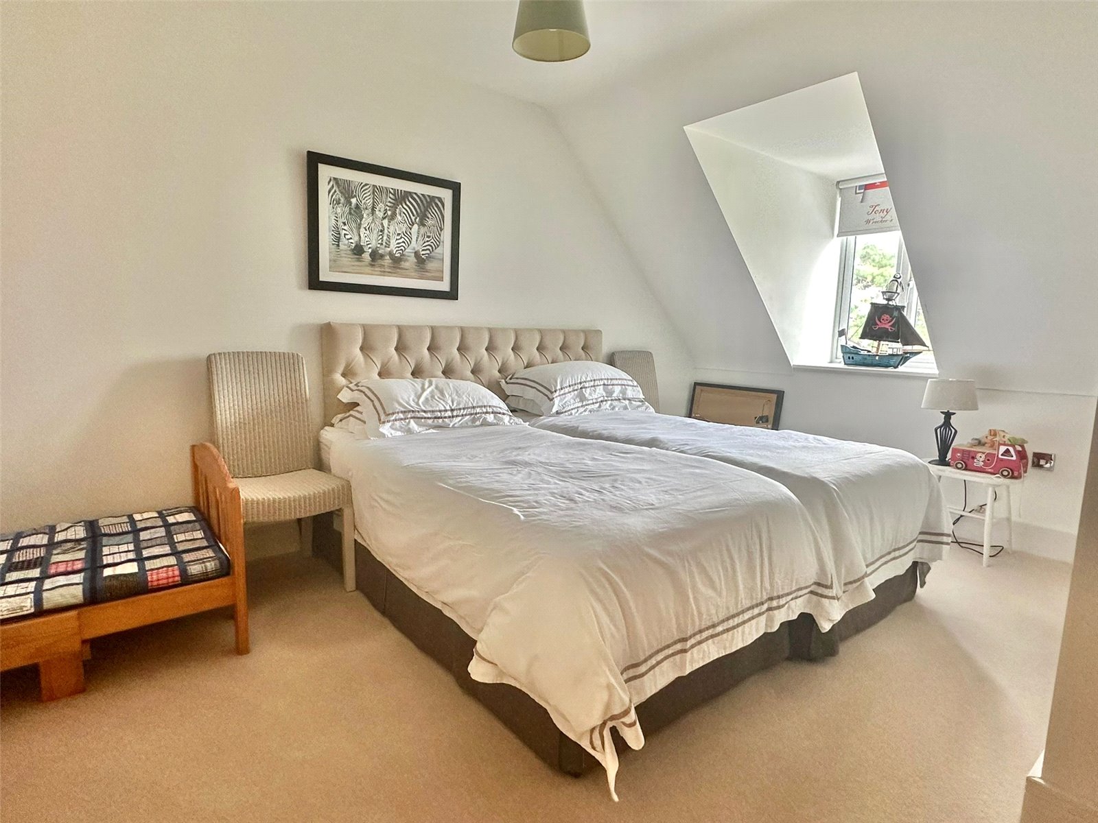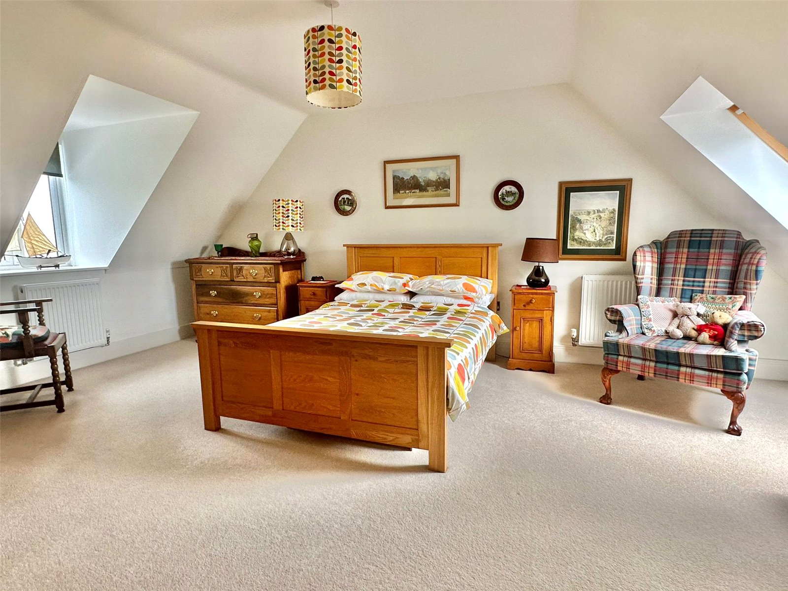 UPVC double glazed window overlooking the rear garden, further double glazed Velux window with views towards Sturt Pond and the Isle of Wight beyond, fitted wardrobe, central heating radiators, ceiling light point and door leading to: