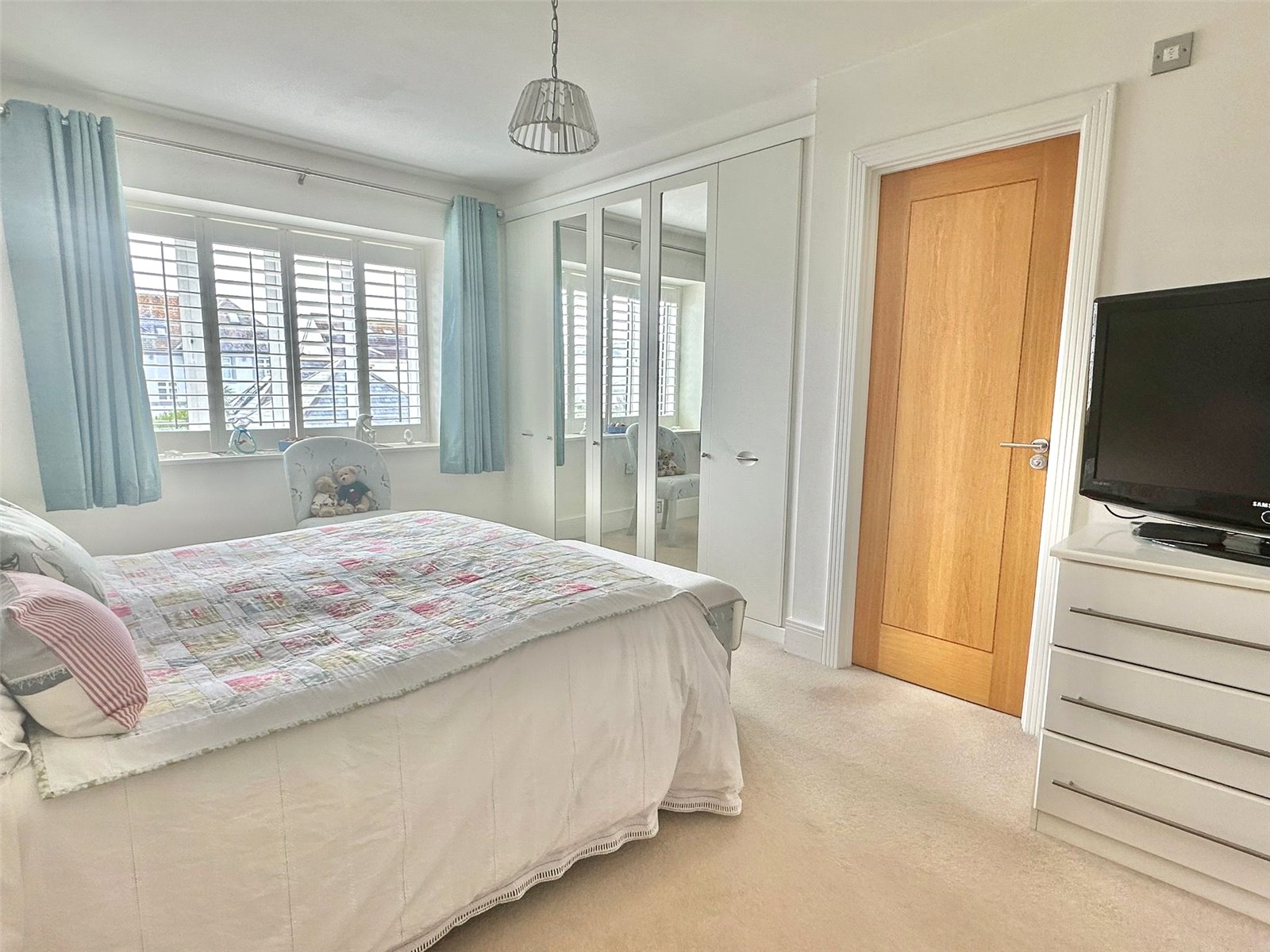 UPVC double glazed window with fitted shutter blind overlooking the front aspect with an outlook towards the seafront and Isle of Wight, a good range of deep fitted wardrobes with hanging and storage space, central heating radiator, ceiling light point and door leading to: