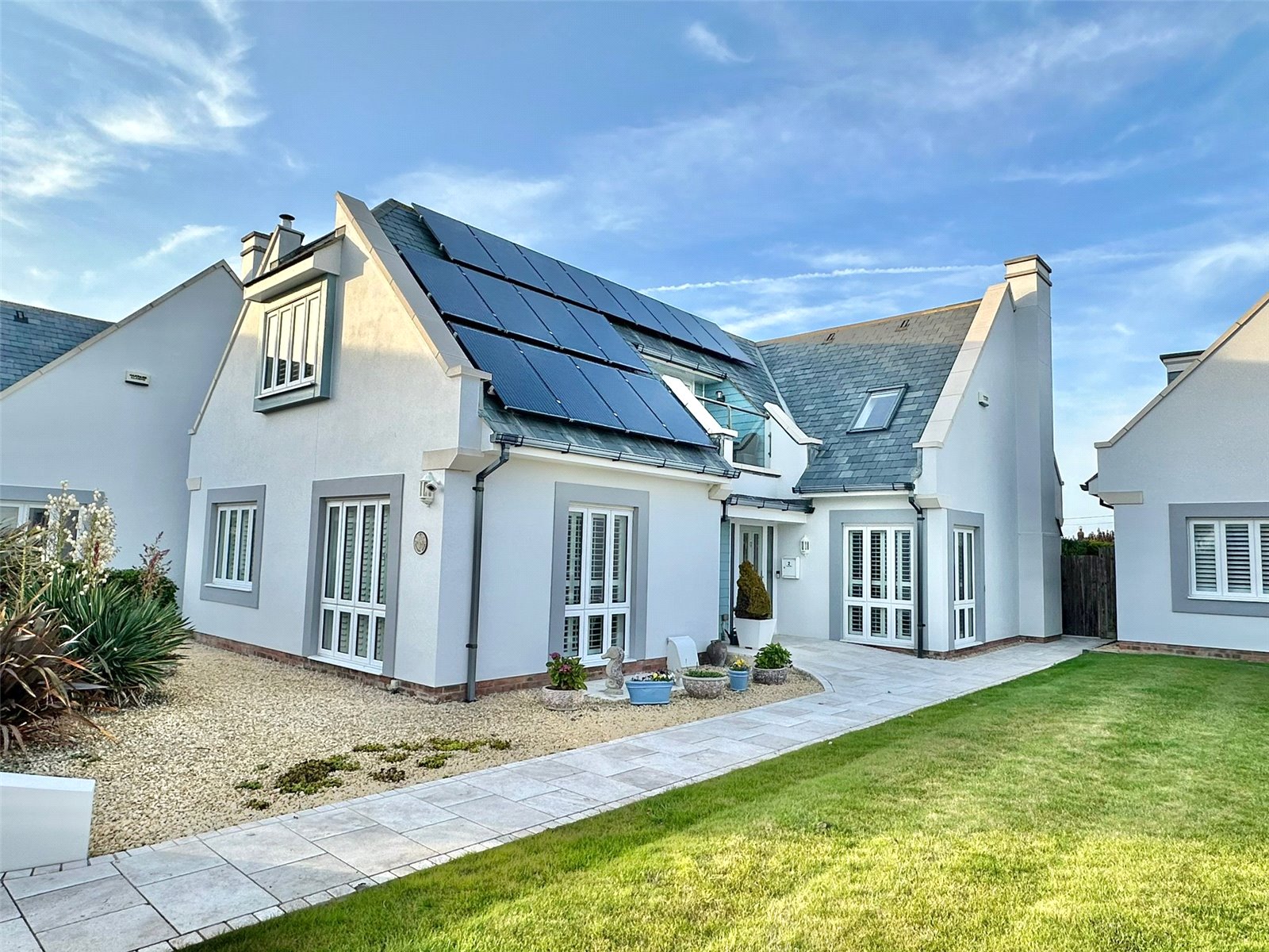 The front has a brick paved driveway from Hurst Road leading through electrically operated wrought iron gates to the very attractive front aspect of Waters Edge, providing security and privacy to the residents. The brick paving continues to the double detached garage with additional off street parking for two cars. A Travertine paved footpath leads you to the front entrance with the remainder of the front laid to shingle and further soft landscaping with a low rendered front boundary wall