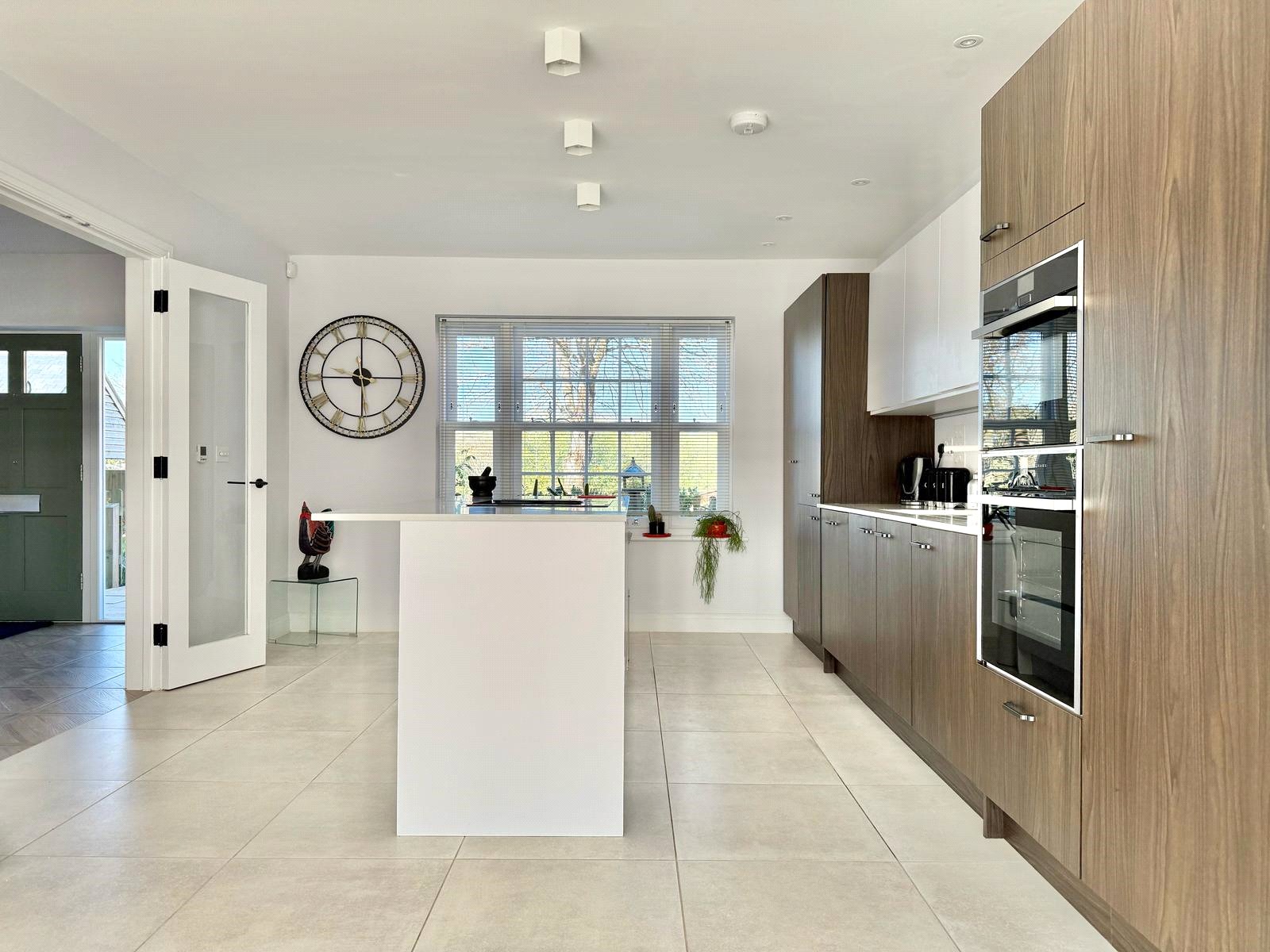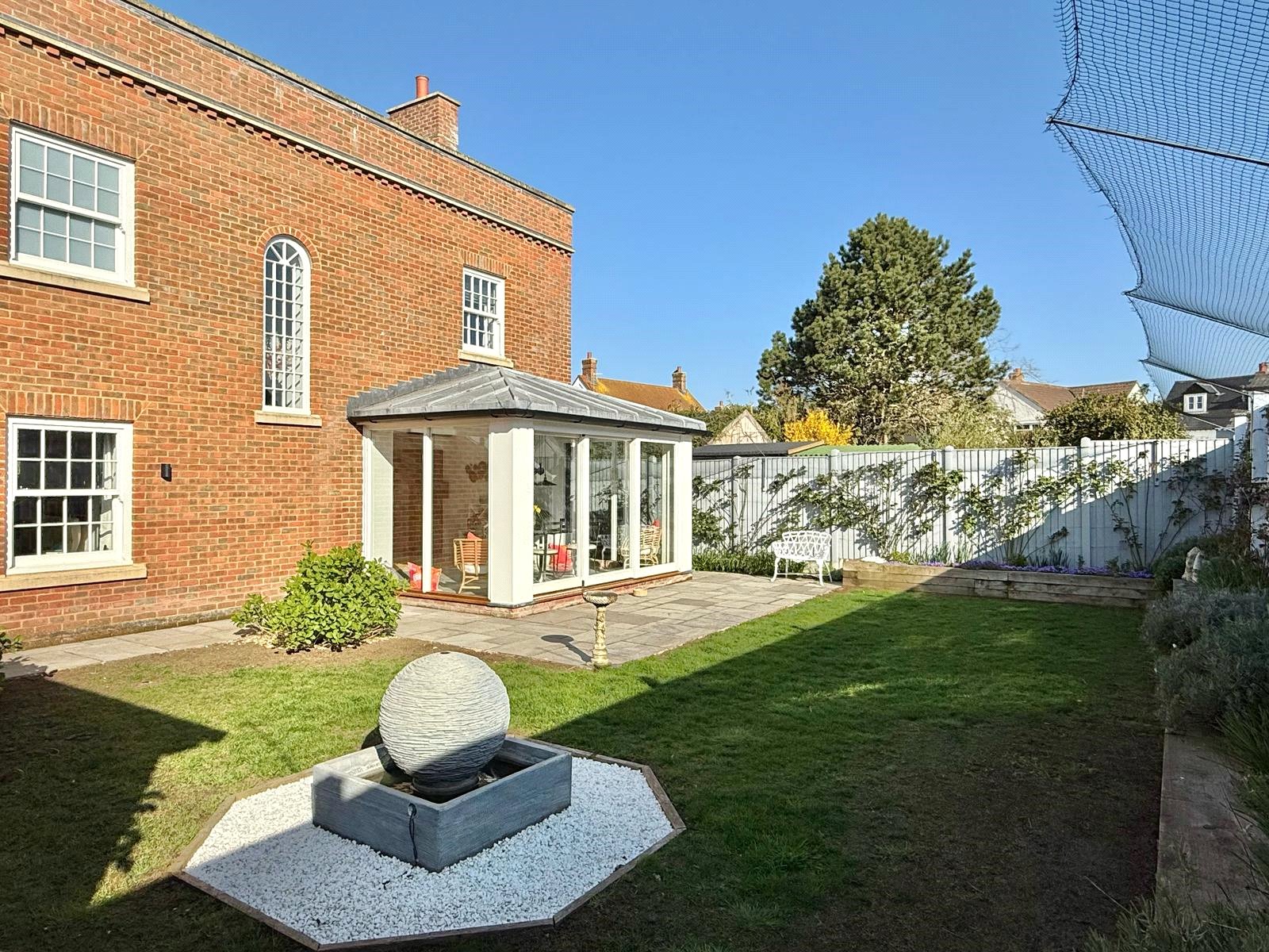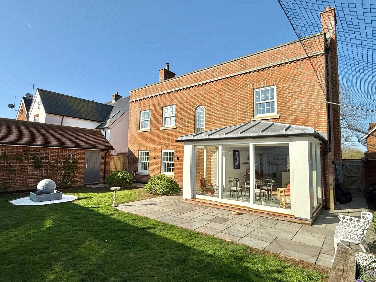 A modern detached house set in an exclusive development in the village centre, benefitting from four bedrooms, three bathrooms, beautiful courtyard garden, garage and driveway