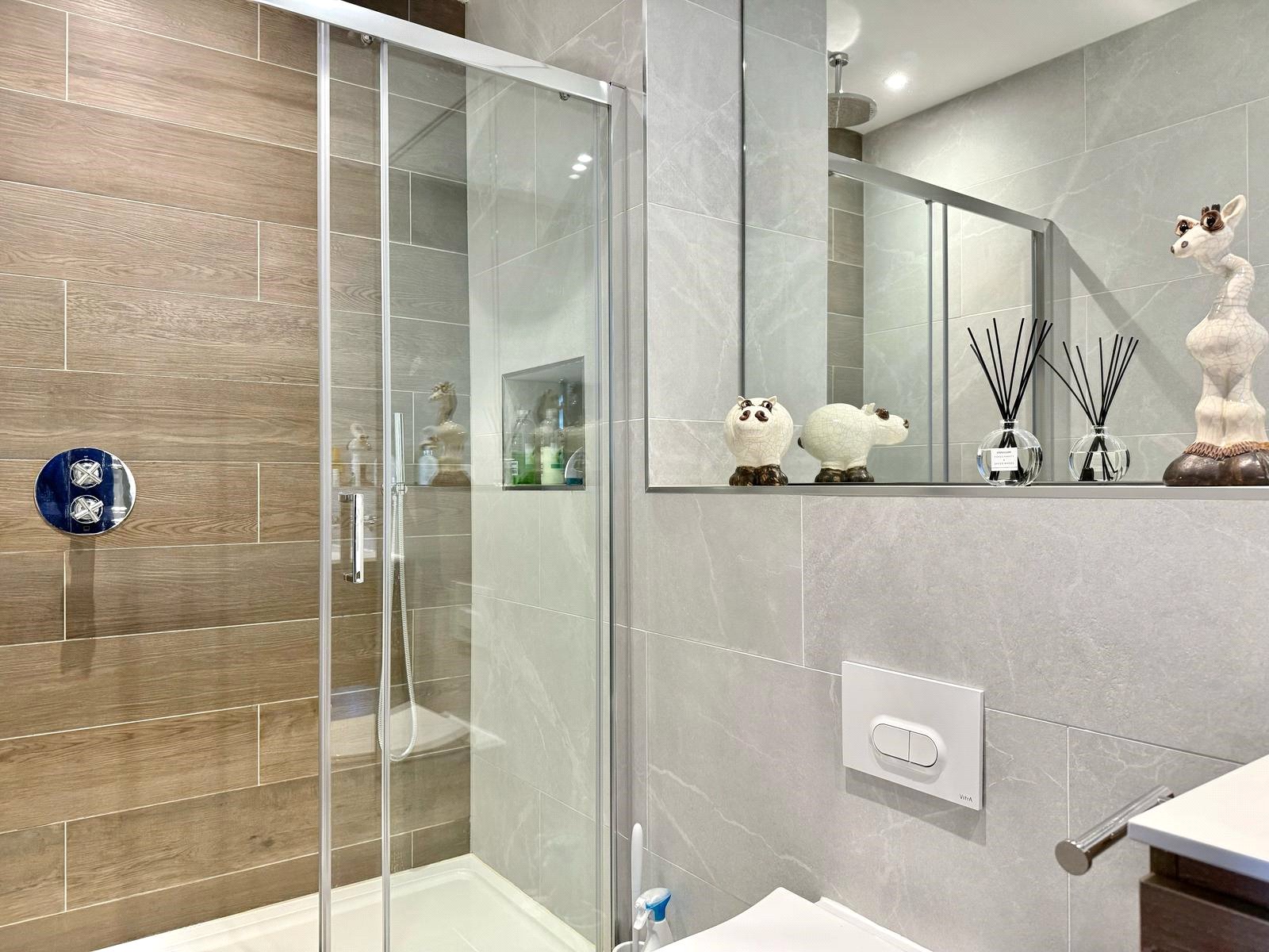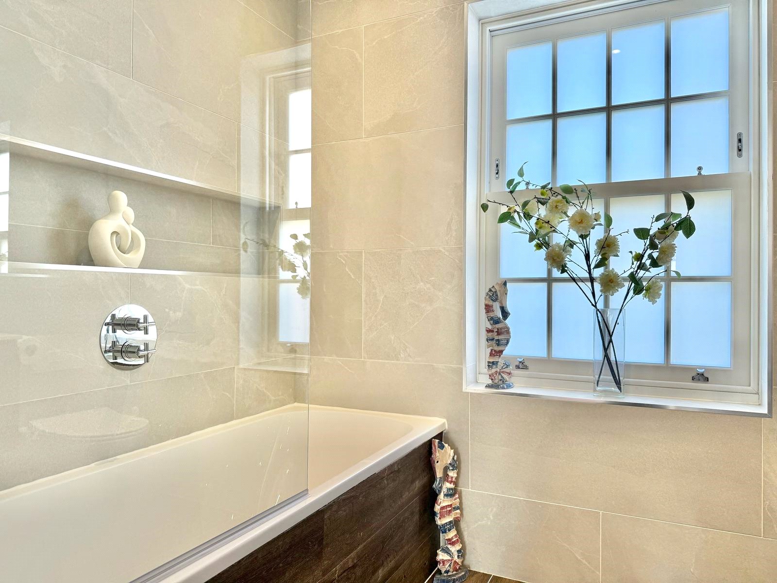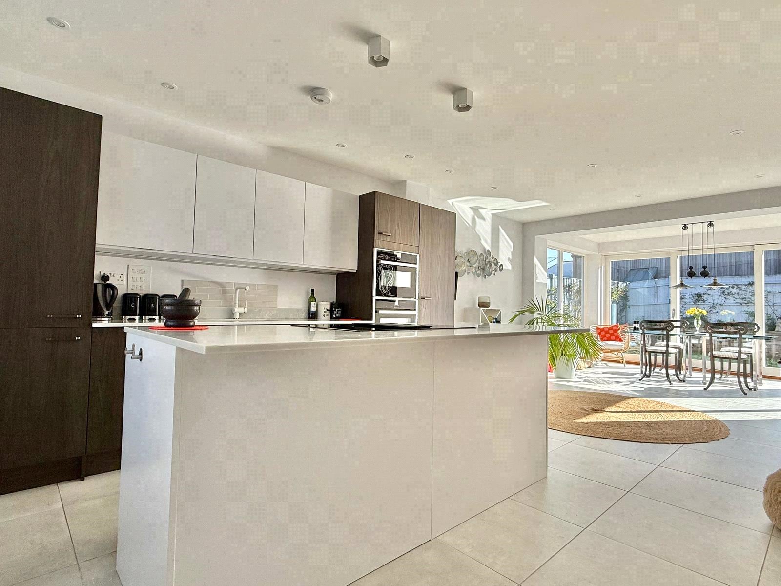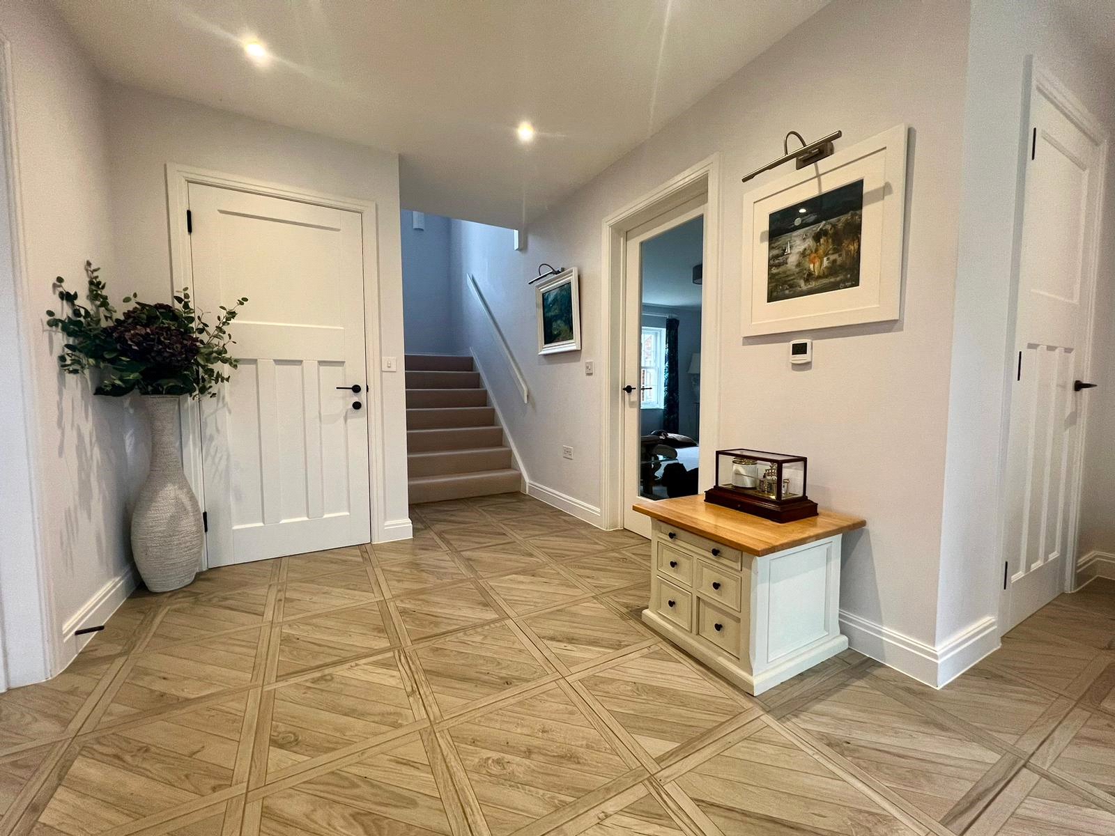 A modern detached house set in an exclusive development in the village centre, benefitting from four bedrooms, three bathrooms, beautiful courtyard garden, garage and driveway