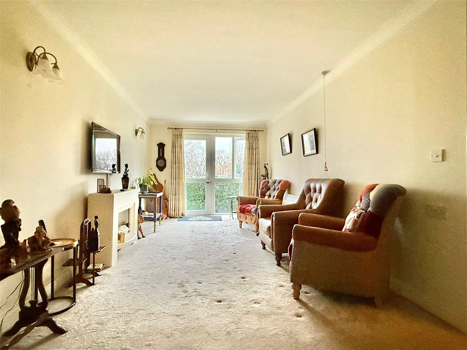 UPVC double glazed and adjacent full height window overlooking the Sea Road aspect with adjacent communal grounds, and a personal gate from Sea Road giving direct access to apartment number 20. The sitting/dining room has wall light points, TV point, Dimplex electric heater, and double opening doors leading to: