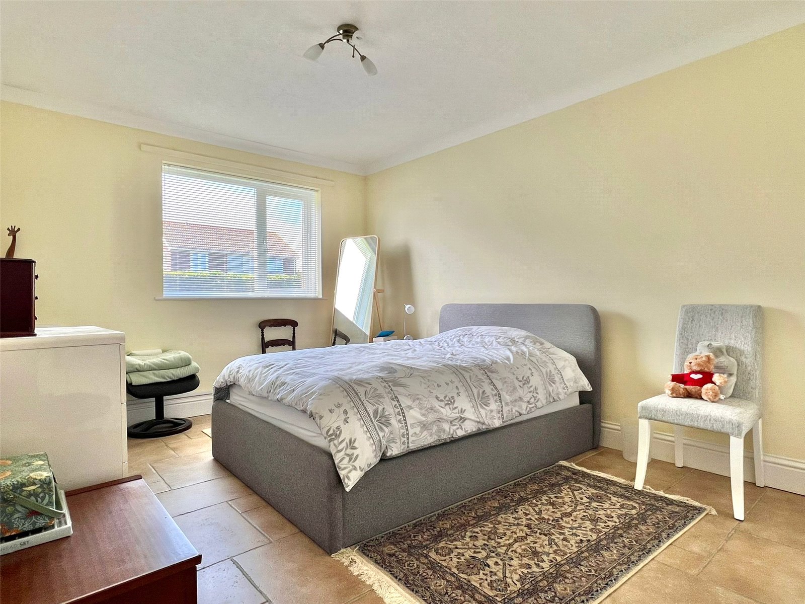 UPVC double glazed window with fitted blind to the westerly aspect, ceiling light point, fitted double wardrobe