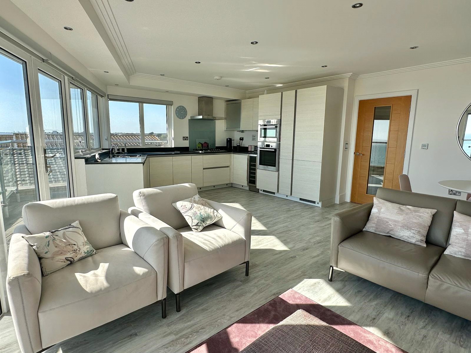 A two double bedroom, two bathroom penthouse apartment with open plan living space enjoying unrivalled coastal views from the Isle of Wight and Needles through to Christchurch bay and the Purbecks, superbly presented and offered chain free.