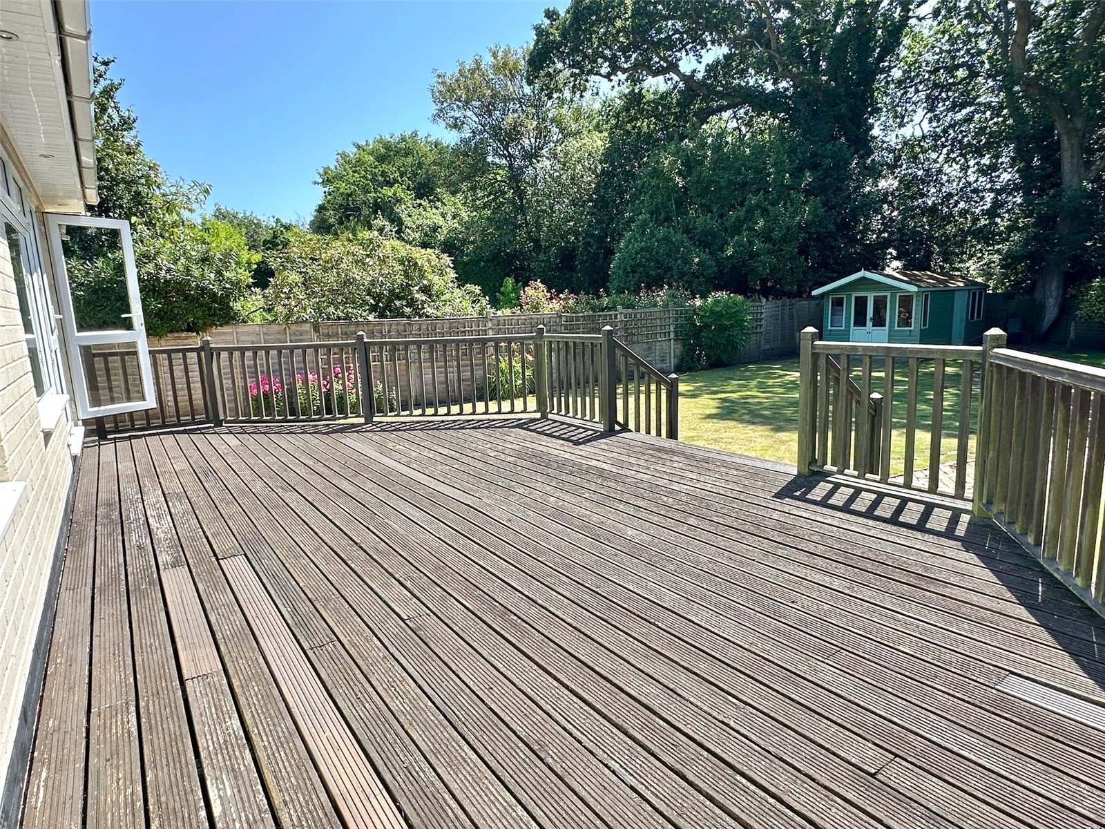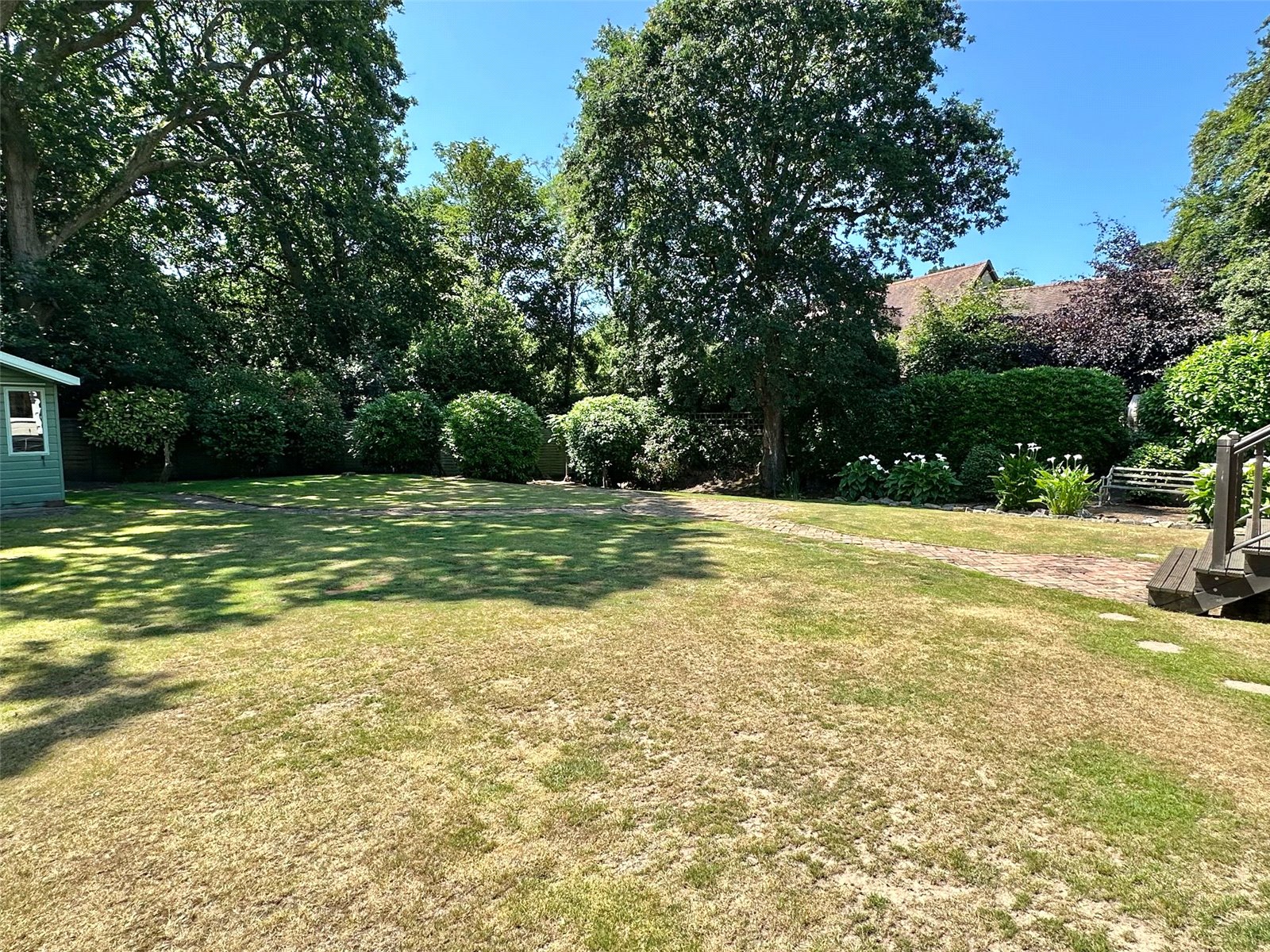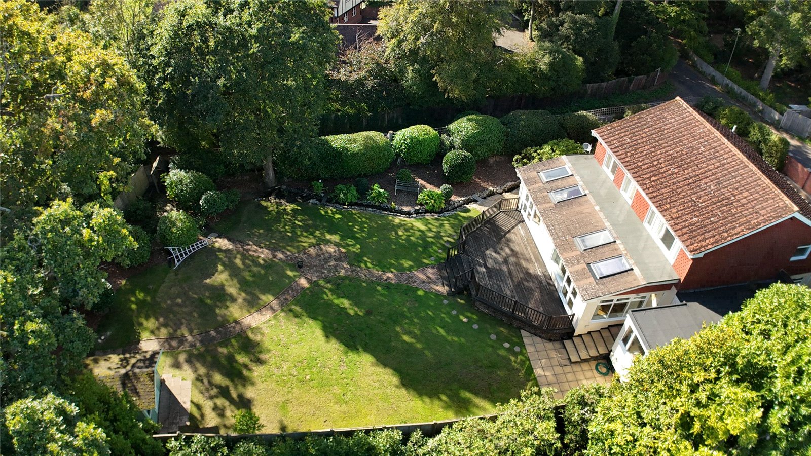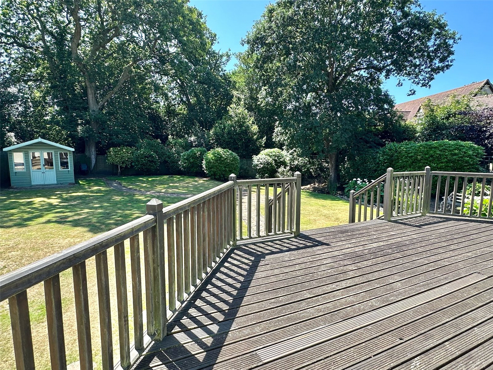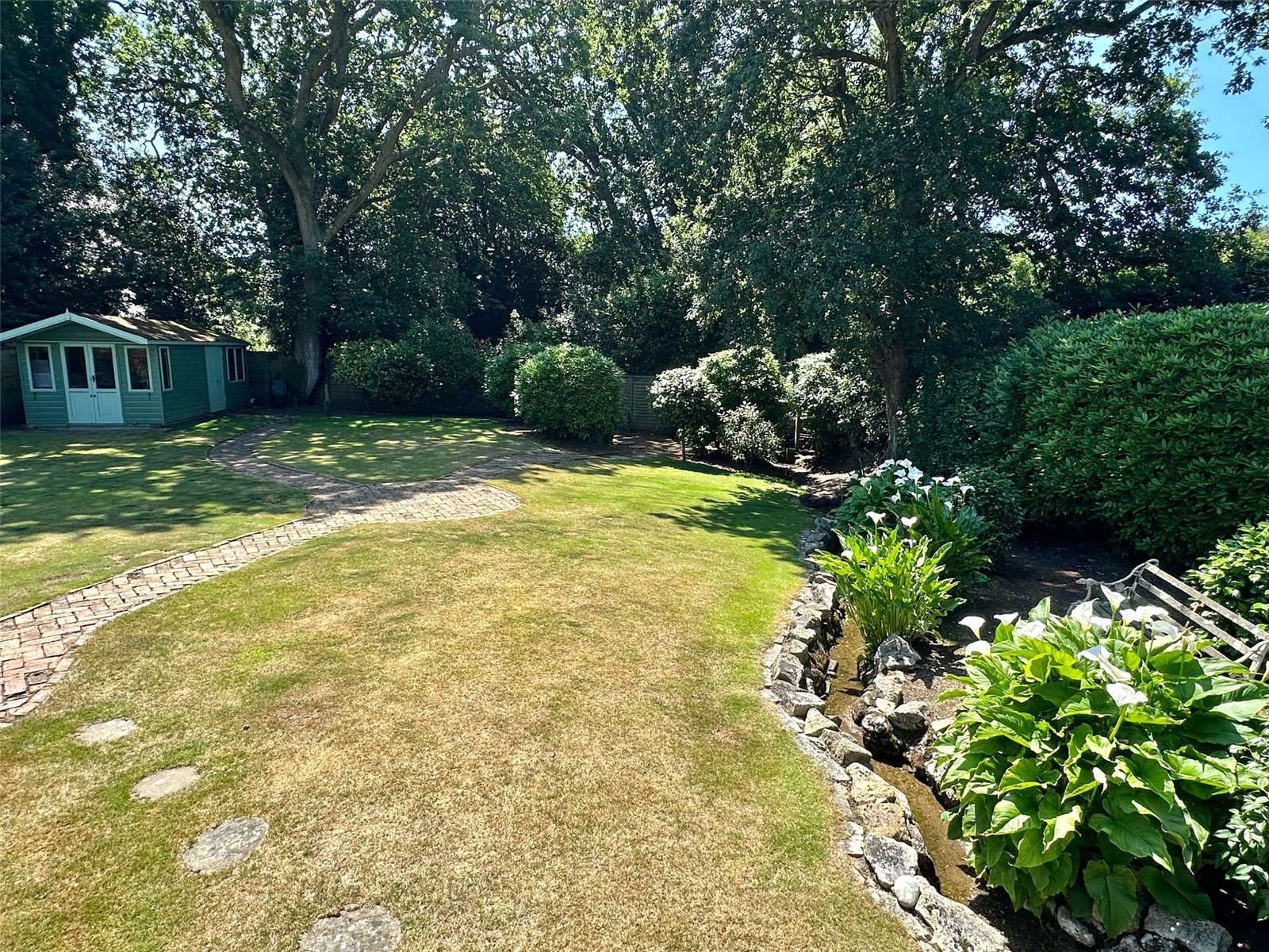 The delightful southerly aspect rear garden has a good sized area of raised decked and balustrade terrace accessed from the breakfast room and garden room leading onto the garden predominately laid to lawn with central brick paved pathways, shrub flowerbed/tree borders, to one side of the garden runs a small rill, set to the rear of the garden is a timber framed summer house attached to the rear of which is a good sized garden store with double opening doors, light and power connected. The front has a tarmaccaden driveway approach to the front entrance and garage providing off street parking, brick wall front boundary, fenced side boundaries, mature shrub borders, side gate access.