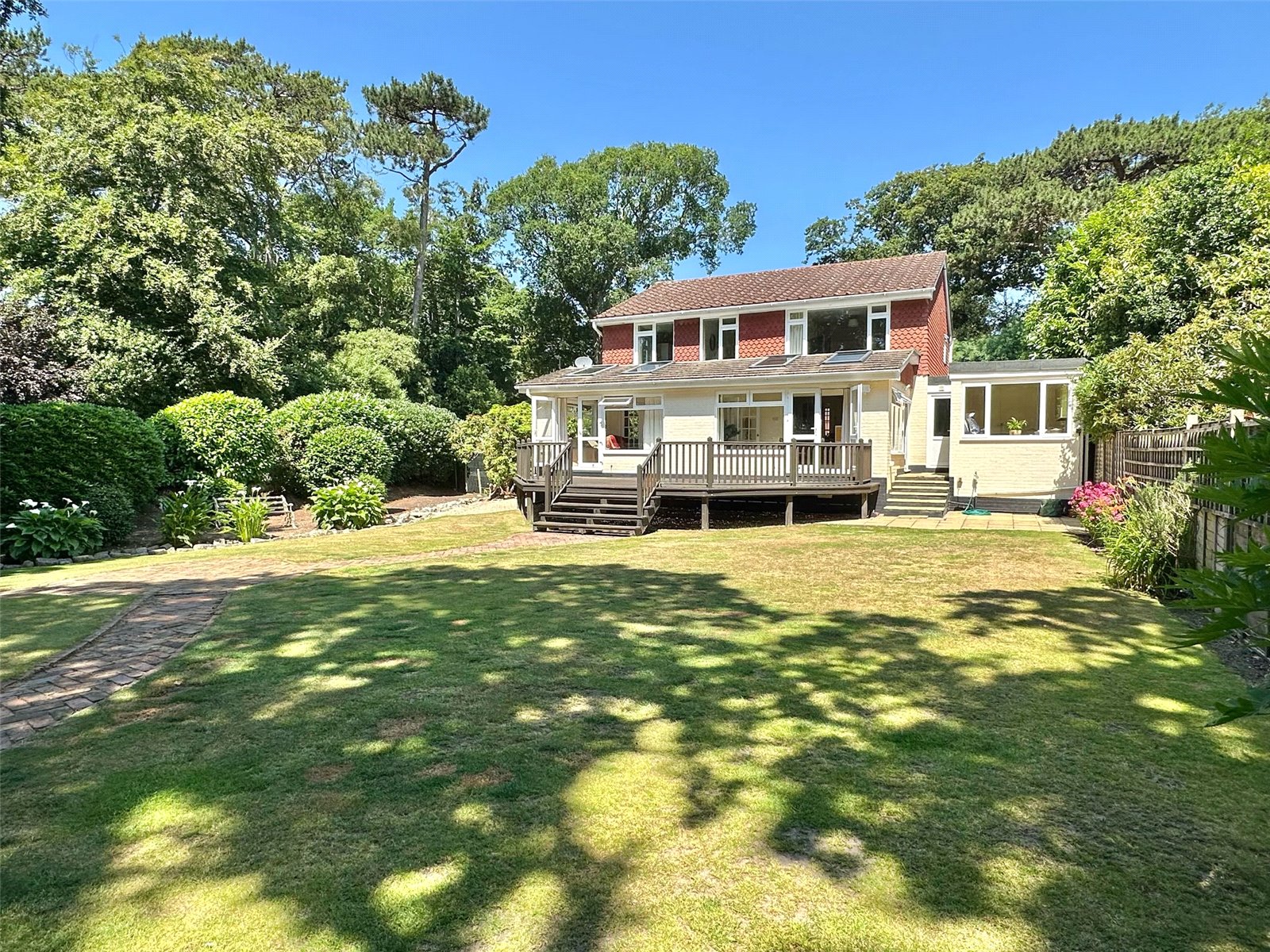 An elegant detached family home with a superb south facing rear garden located close to the sea front, with five bedroom...