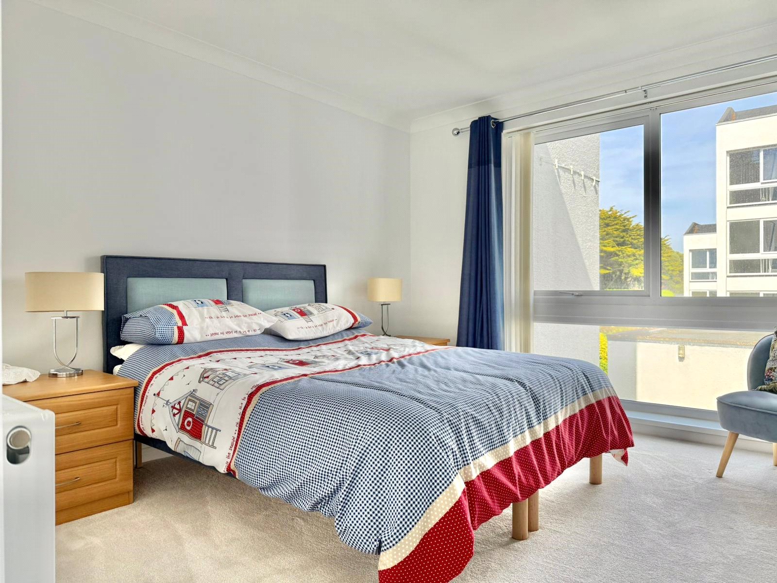 Full height UPVC double glazed window, ceiling light point, central heating radiator, triple sliding doored built in wardrobes incorporating a dressing table recess.