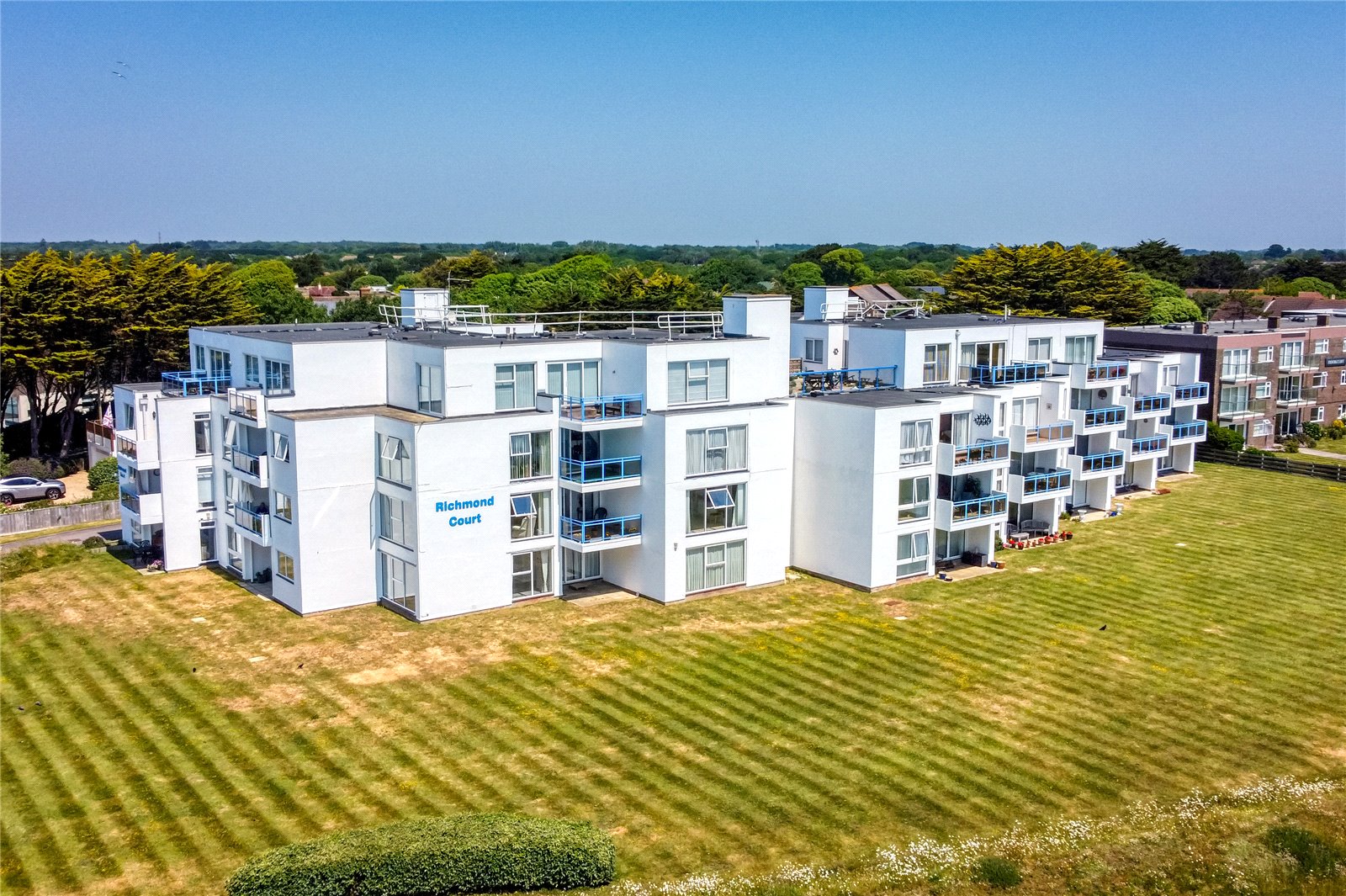 DIRECTIONAL NOTE: From the village green in the centre of Milford-on-Sea, proceed in a westerly direction along the High Street, joining Park Lane (B3058) after crossing Milford Bridge. On reaching the cliff top and passing the Beach House Hotel on the left, turn right into De La Warr Road, and immediately first right into the entrance of Richmond Court.
