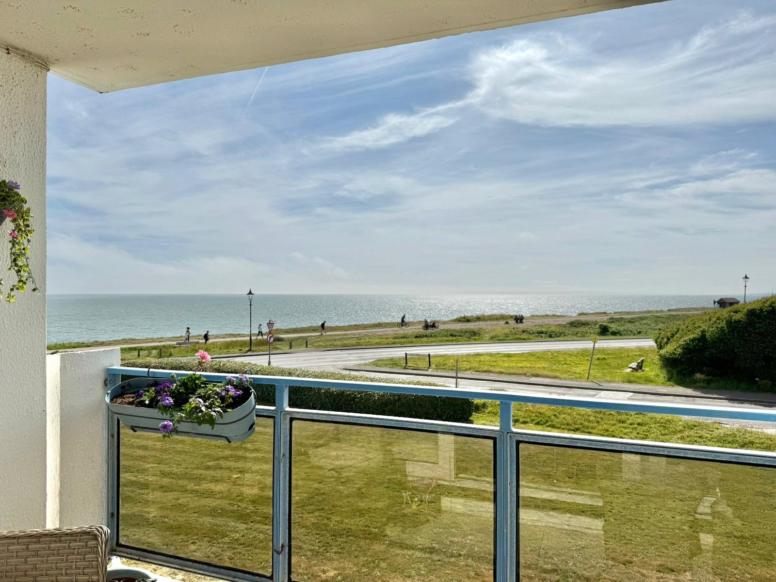 There is car parking, communal lawned grounds to the southerly aspect with the clifftop, seafront aspect beyond. There is a single garage in a block situated below the car park with power connected and electrically operated door