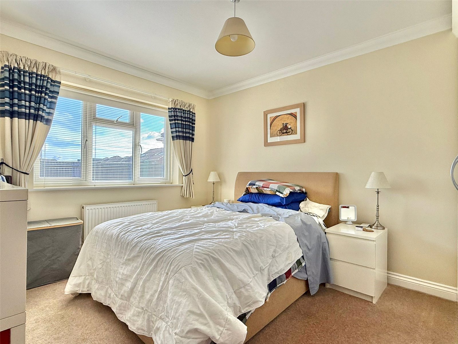 UPVC double glazed window overlooking the rear garden, central heating radiator, ceiling light point, double fitted wardrobe and adjacent dressing table