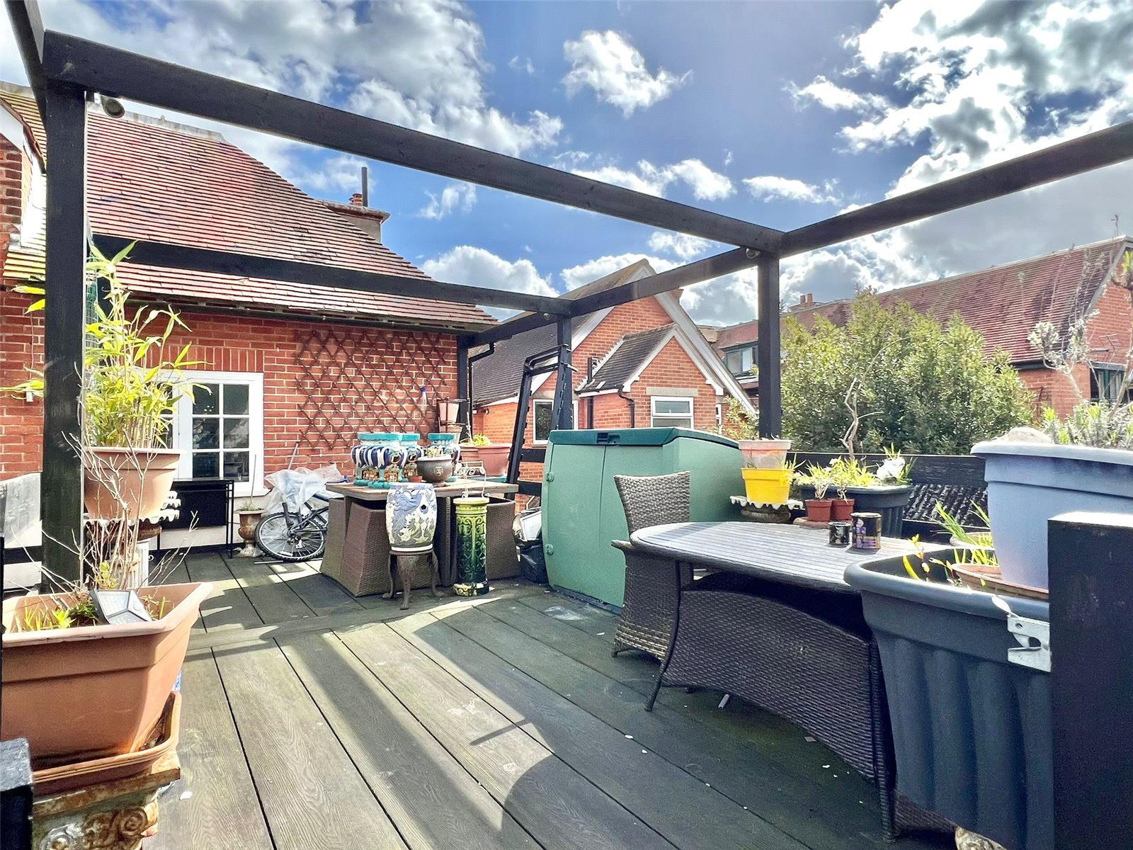 Set to the rear of the Ground Floor Apartment is an enclosed courtyard, Store Room, and timber steps leading up to a large composite decked terrace with balustrade and personal front door leading to: