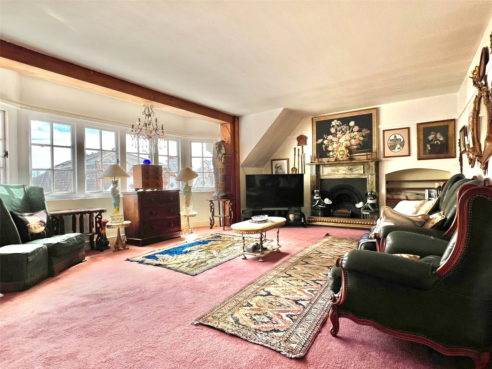 Large bay window to the front southerly aspect, central feature period fireplace, tv point, ceiling light point, central heating radiator