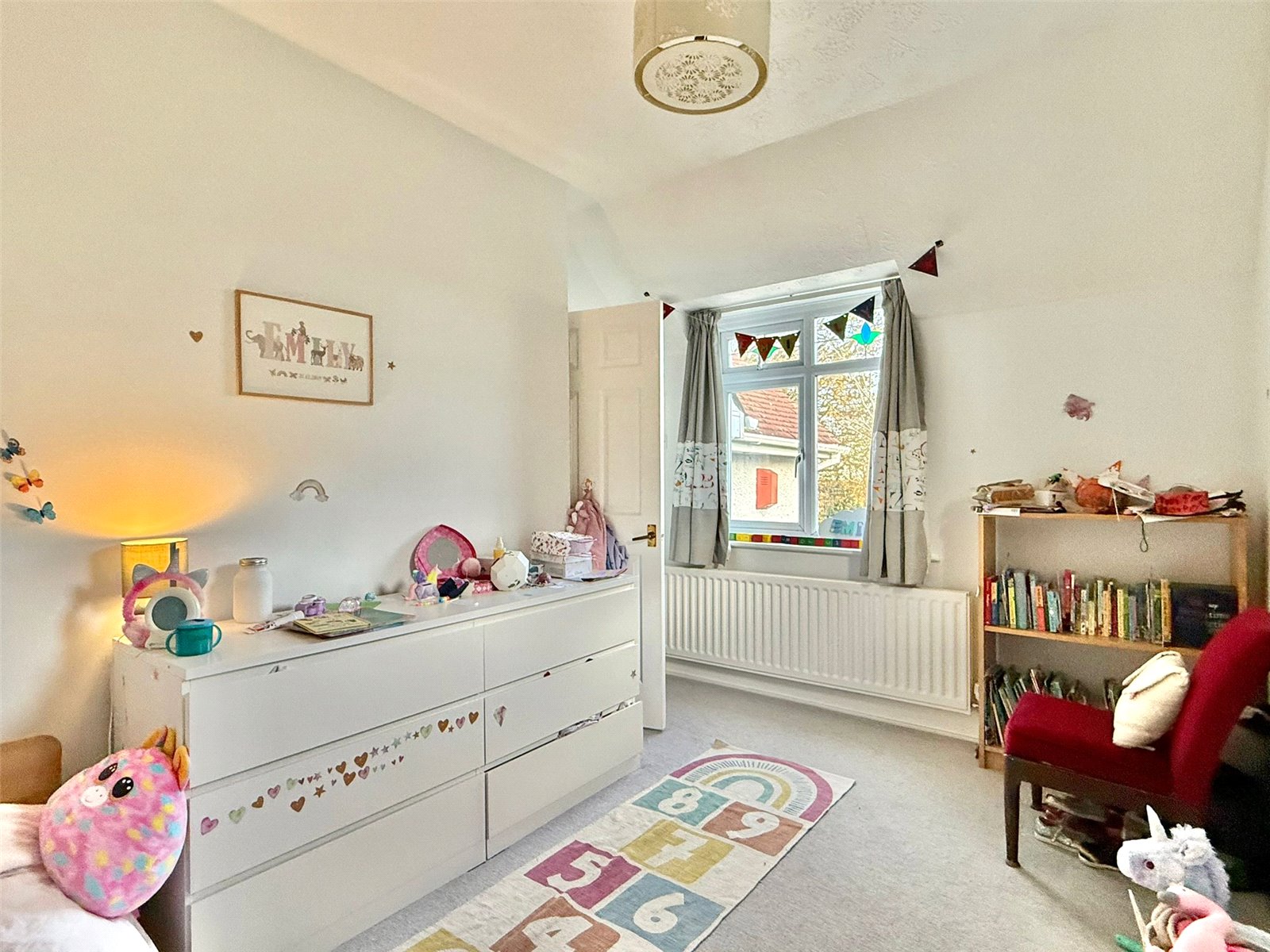 UPVC double glazed window overlooking the west facing rear garden, ceiling light point, central heating radiator