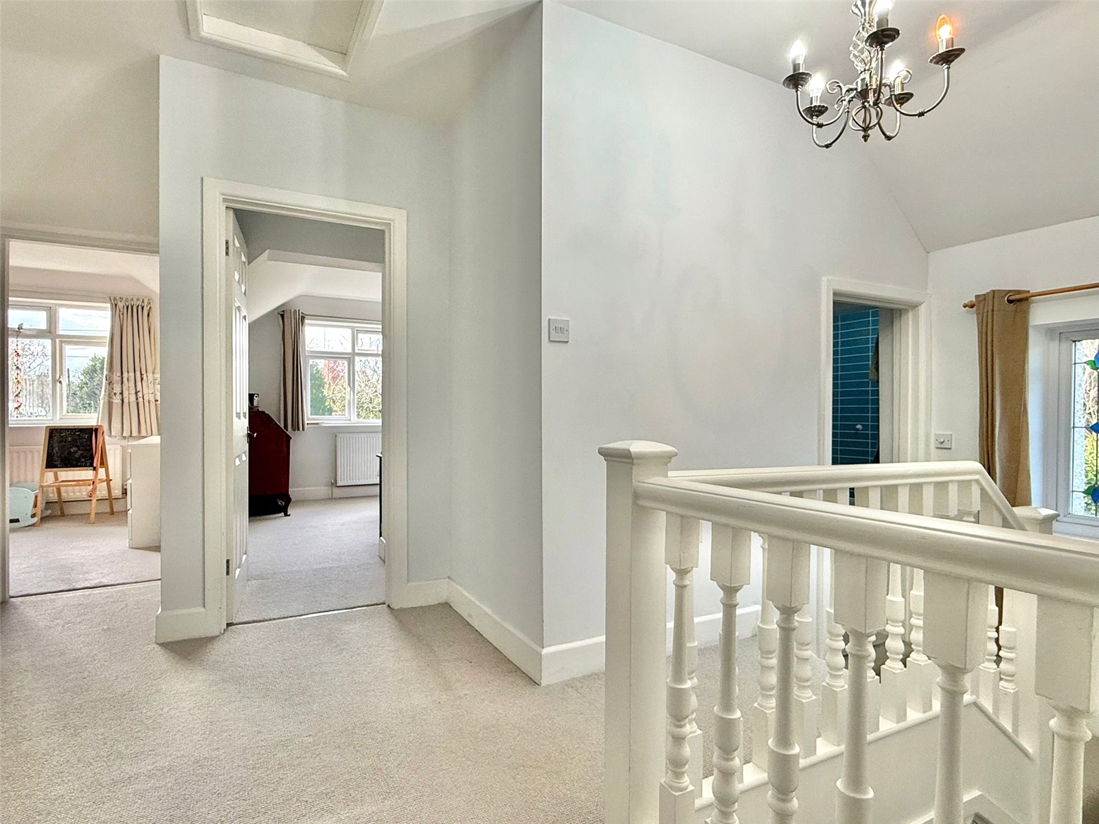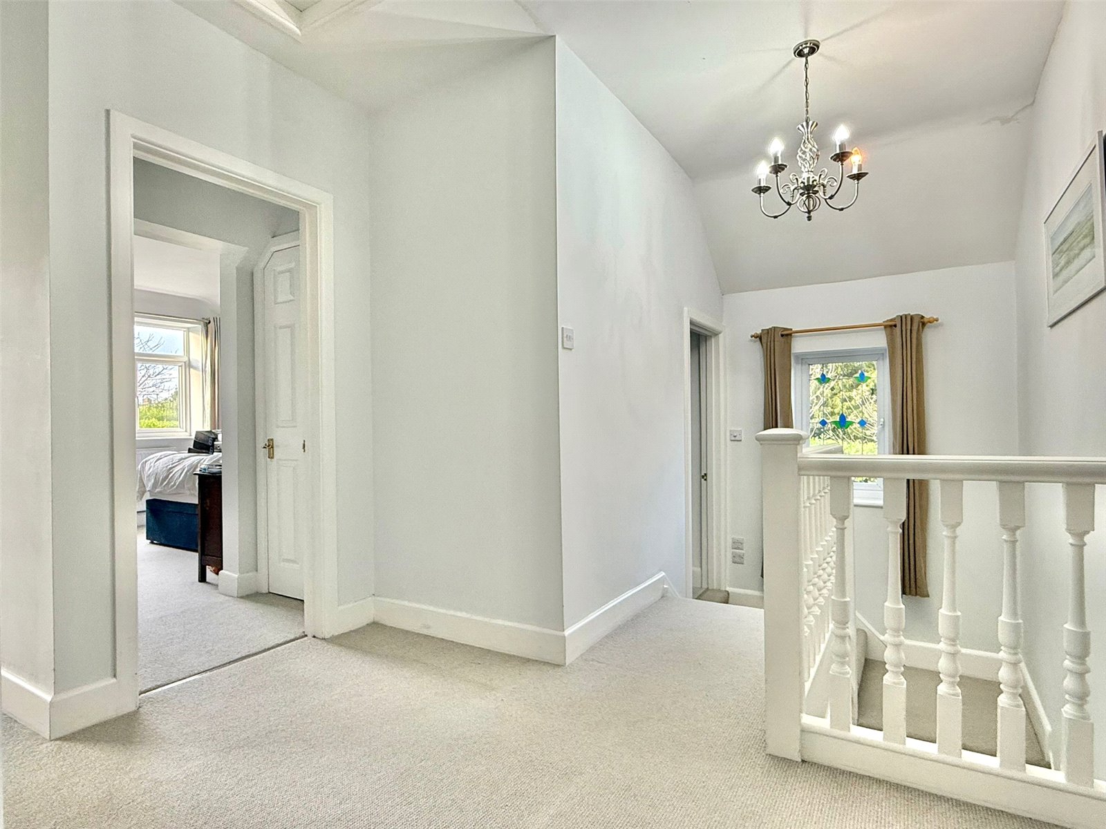 From the Entrance Hall a split level staircase leads to the first floor landing with a UPVC double glazed window at the half landing, ceiling light point, trap giving access to the roof space, airing cupboard, and doors leading to: