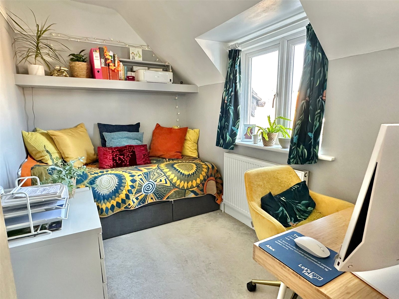 BEDROOM TWO: 9'1" x 9' (2.77m x 2.74m) - UPVC double glazed window, central heating radiator, ceiling light point, recess with fitted desk and shelving.