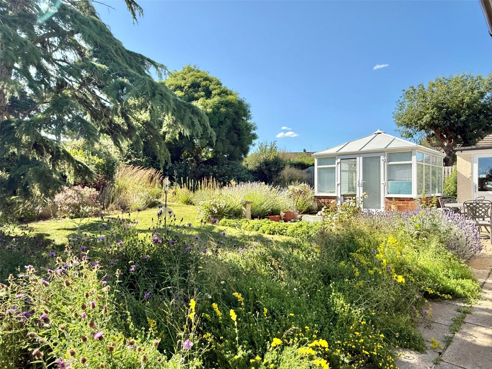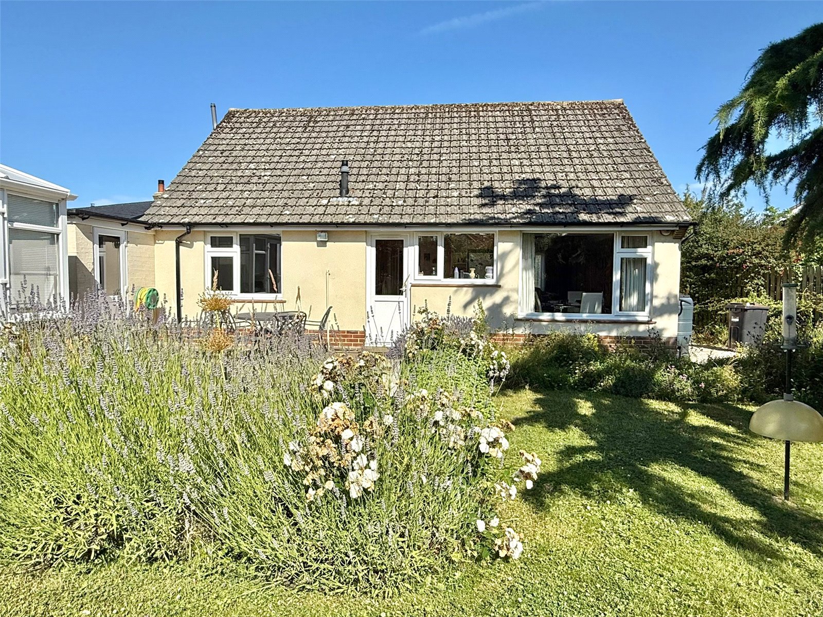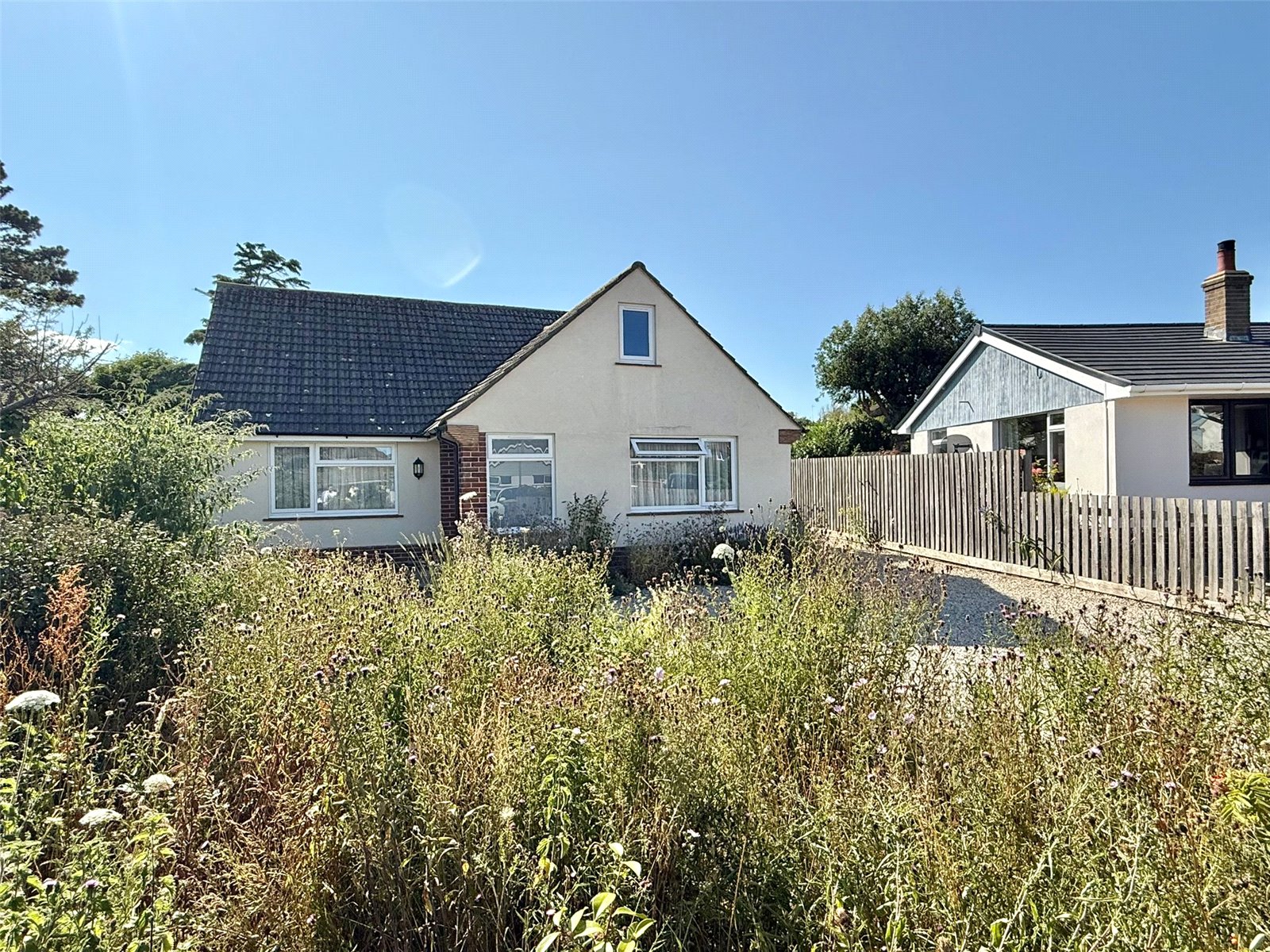 The front has a wide shingle approach with wild flower bed borders, fenced boundaries and ample off street parking