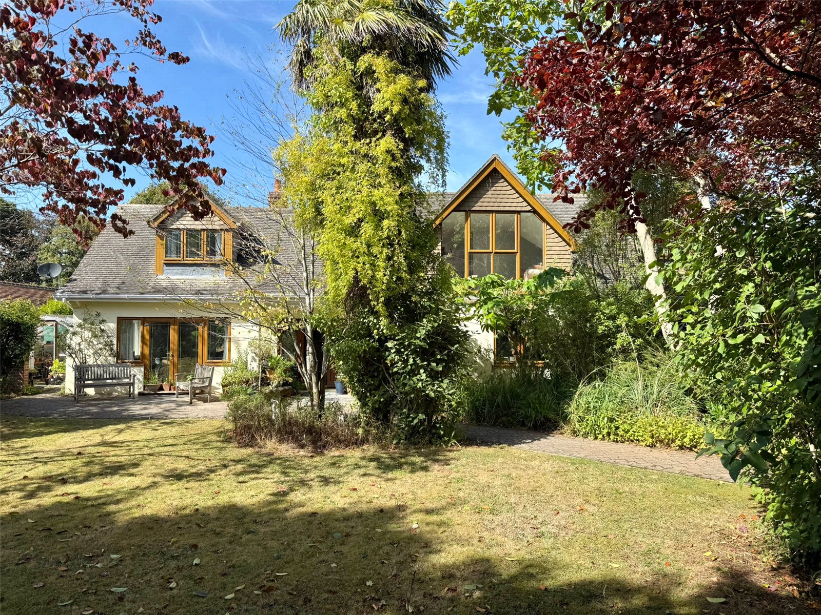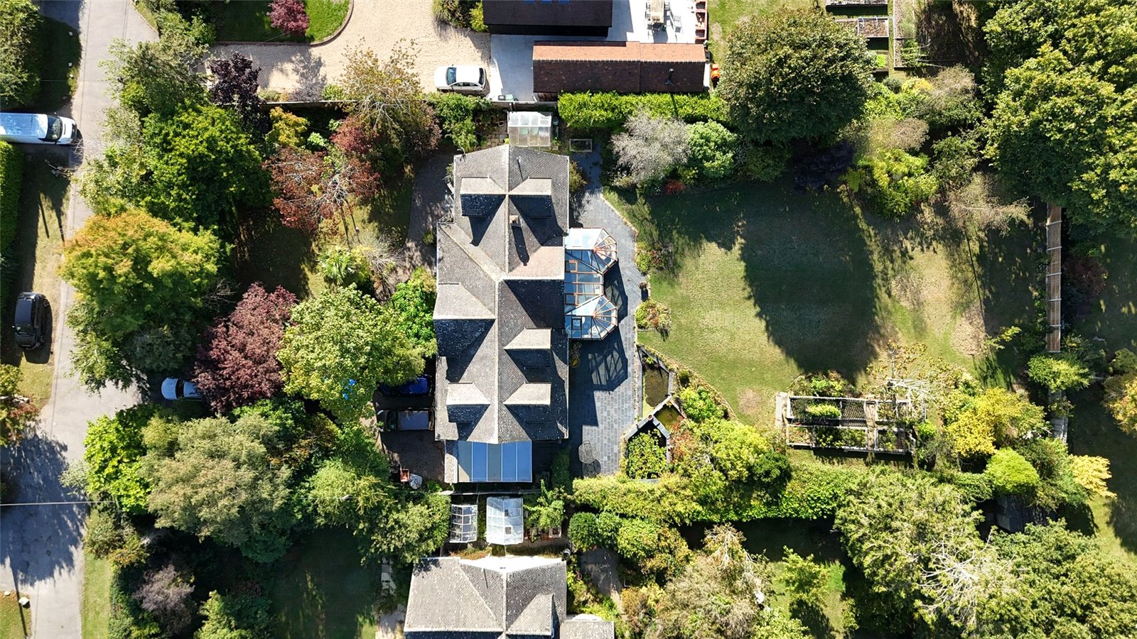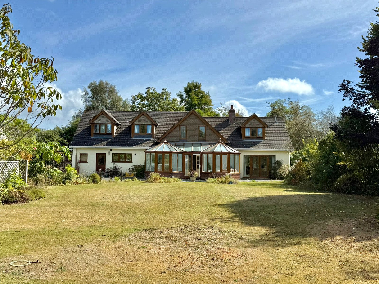 The large rear garden ha a paved Terrace running adjacent to the property accessed from the Sitting Room and Conservatory leading on to lawn with deep shrub/flower bed and specimen tree borders and boundaries, with a rear fenced boundary, adjacent to the terrace is a pond feature.