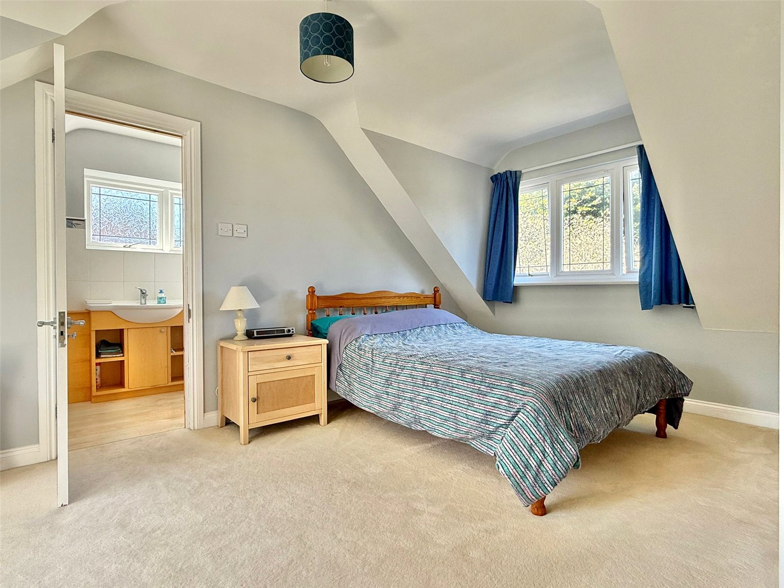 Stairwell from the Entrance Hall leads to the spacious First Floor Landing with central heating radiators, ceiling light points, linen cupboard, and a soft furnishing/quiet area with full height UPVC double glazed windows overlooking the enclosed front garden. An ideal additional living space, or a quiet soft furnished reading area or gym work out space measuring 13'2" x 10'6" (4.01m x 3.2m), and doors leading from the landing to: