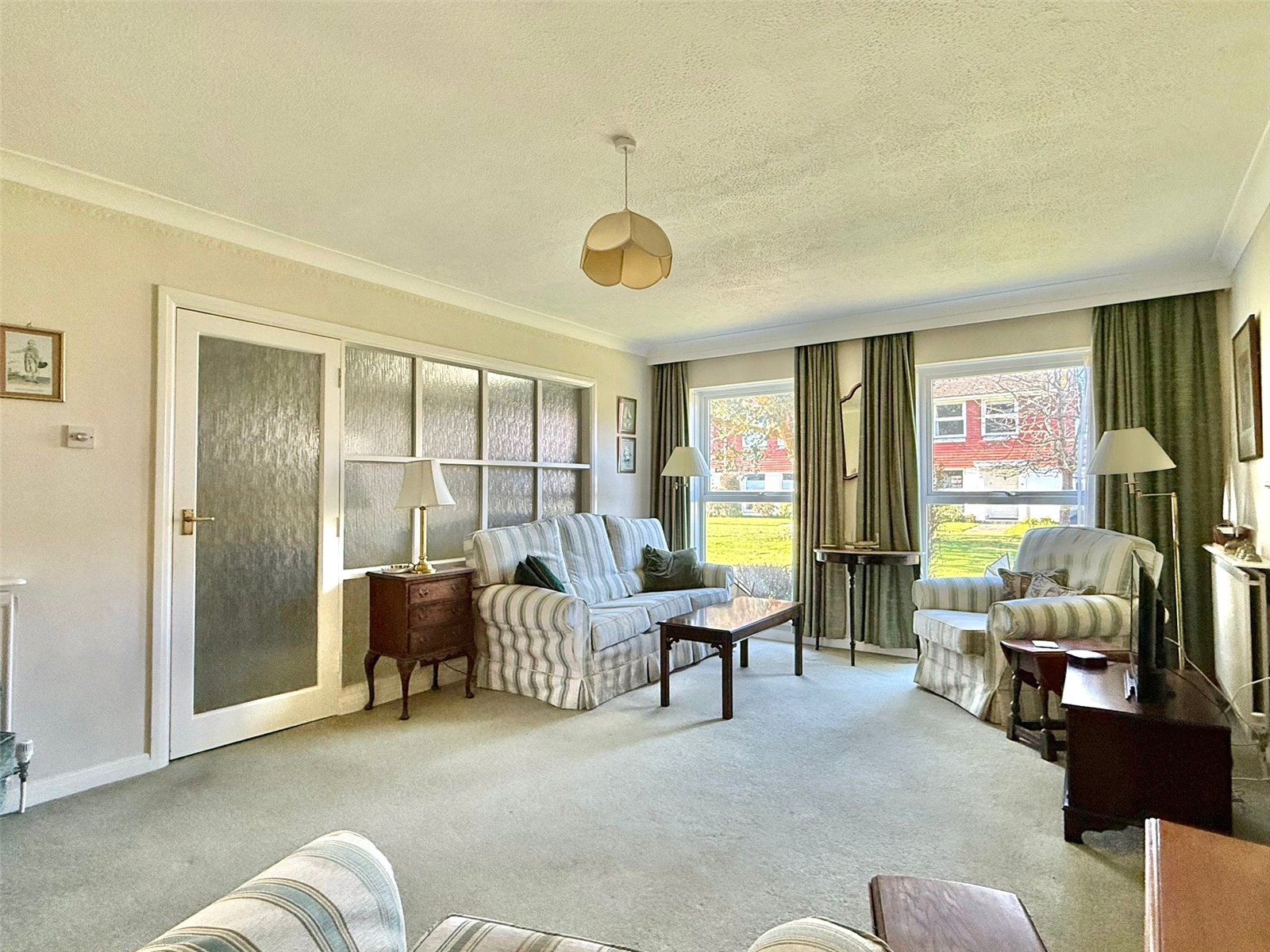 UPVC double glazed full height windows overlooking the front communal grounds, central feature fireplace, ceiling light point, central heating radiators, double opening doors from the Sitting Room and a door from the Kitchen lead to: