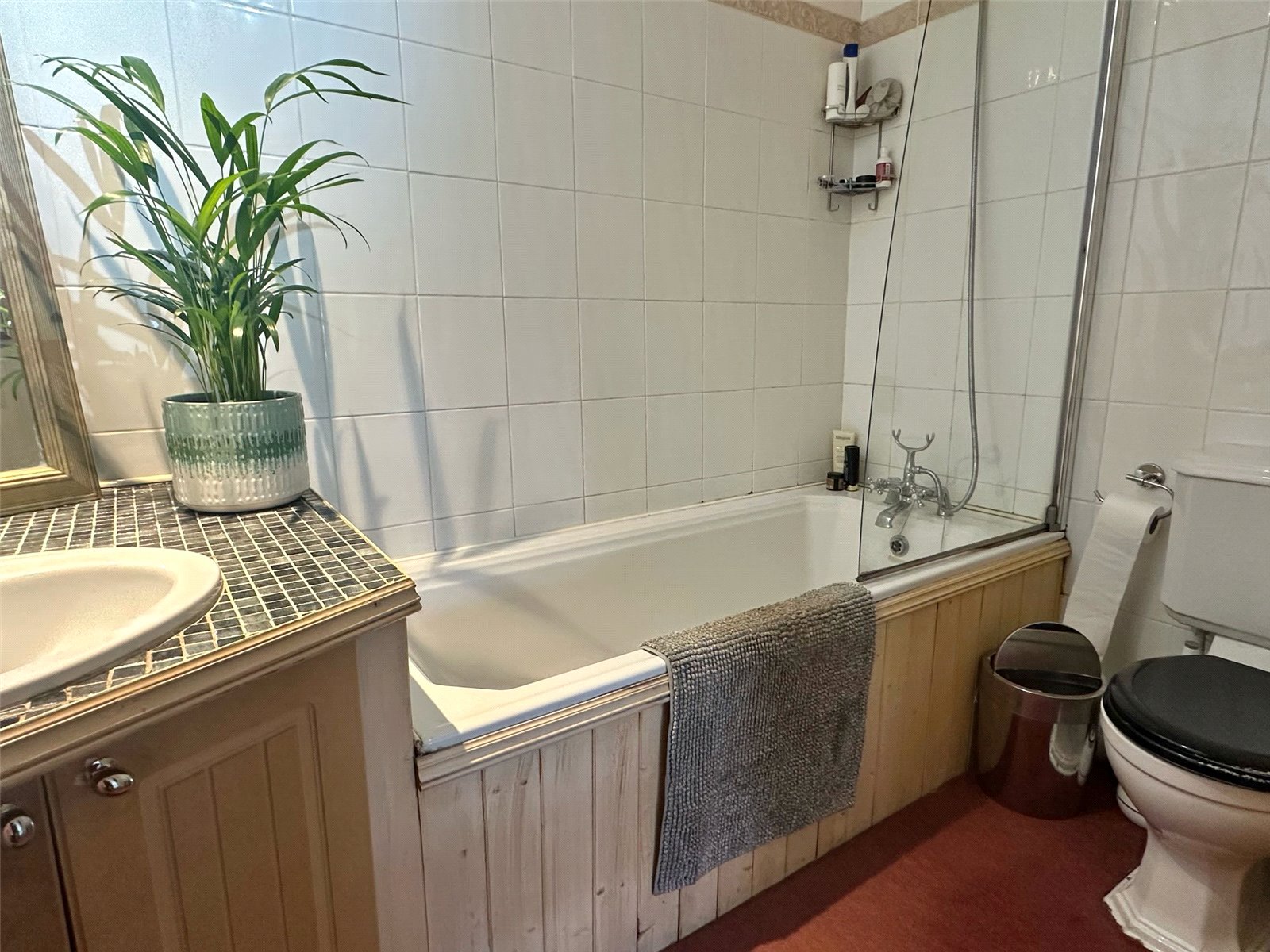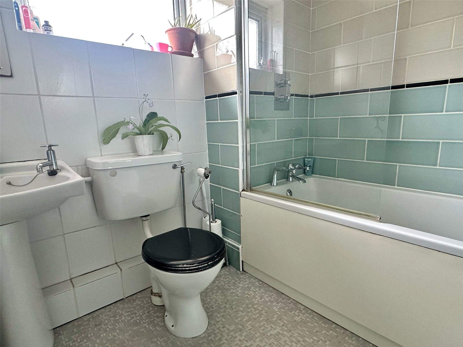 Comprising bath with fitted shower and shower screen, wc, wash hand basin, heated towel rail, ceiling light point, obscure UPVC double glazed window