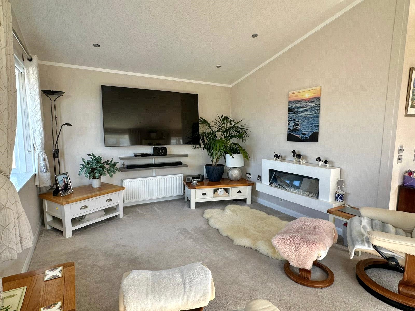 A delightful double aspect living space with two UPVC double glazed bay windows, adjacent UPVC double glazed double opening doors overlooking and leading to the south west facing sun deck and overlooking the Sturt Pond reed beds, feature contemporary style electric fireplace, central heating radiators, recessed ceiling spotlighting, TV point