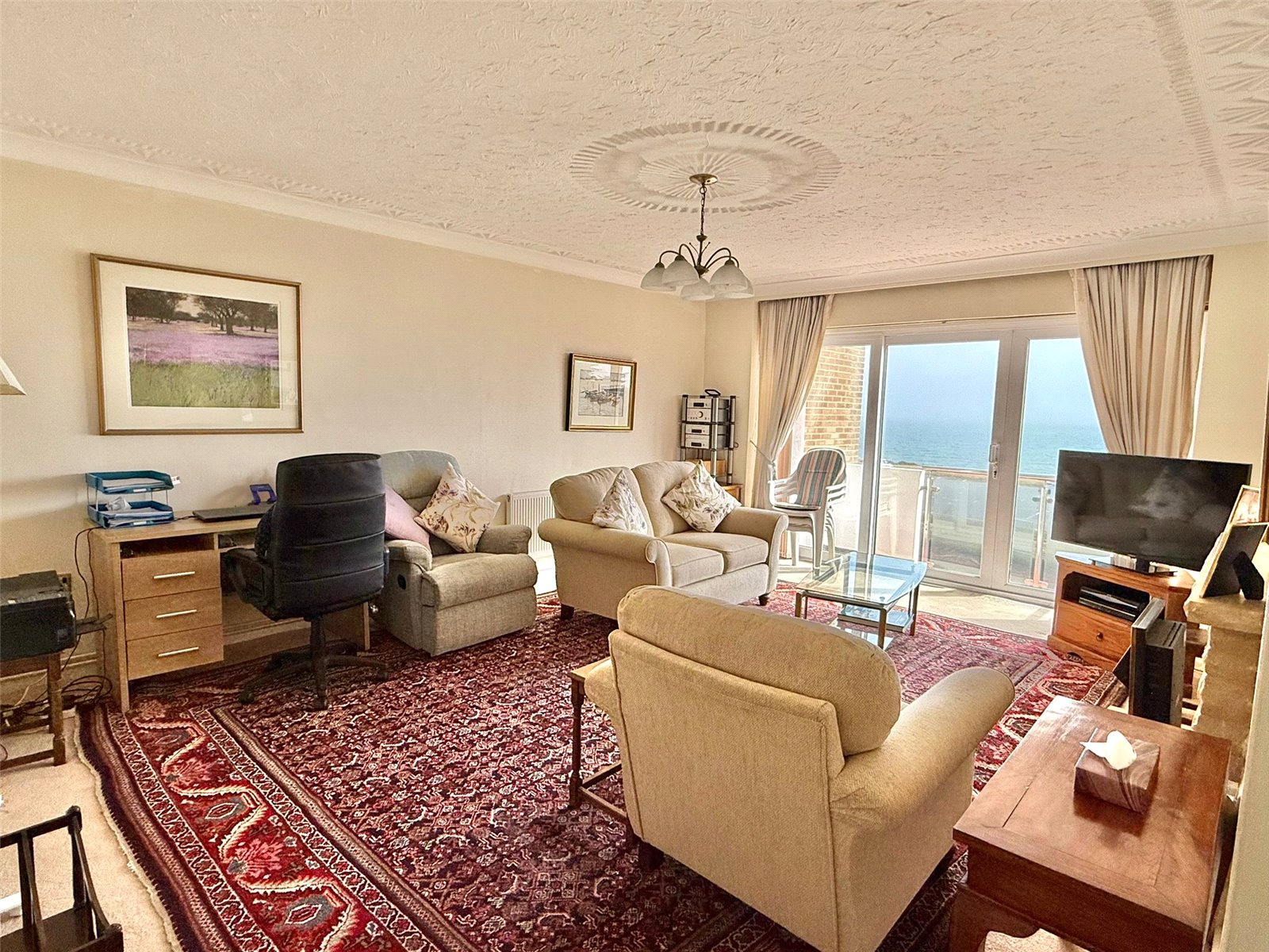 A three bedroom, spacious seafront apartment with an outstanding elevated Isle of Wight, Needles and Christchurch Bay vista with lift, balcony and garage
