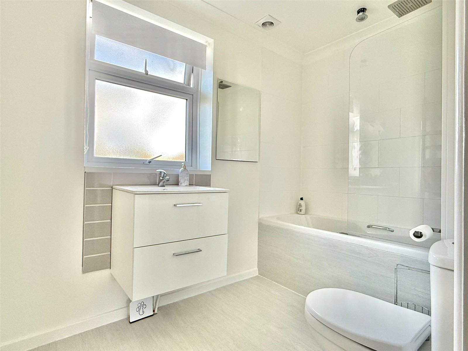 BEDROOM THREE: 12'6" narrowing to 9'4" x 8'6" (3.8m x 2.84m x 2.6m)- UPVC double glazed window to the rear aspect with a clifftop and sea view, central heating radiator, recess ceiling spotlighting