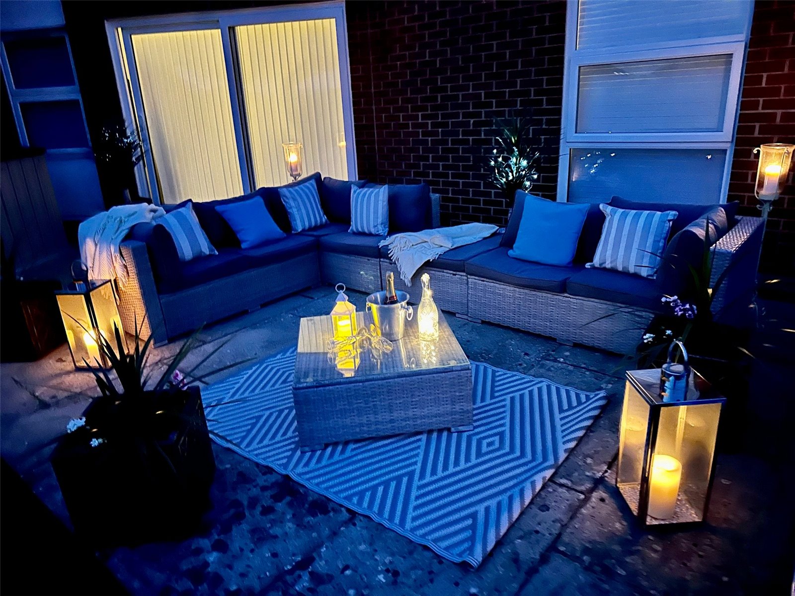 Southerly aspect ambient and superbly presented living space with UPVC double glazed sliding patio doors overlooking and leading onto the paved garden terrace with communal grounds and cliff top beyond, feature wall with downlighting and high level TV point and space for 65” television, central heating radiators, recessed ceiling spotlighting with separate dimmer switches for Living Area and pendant lights in Dining Area, timber clad feature wall in the dining area and free flowing access to:
