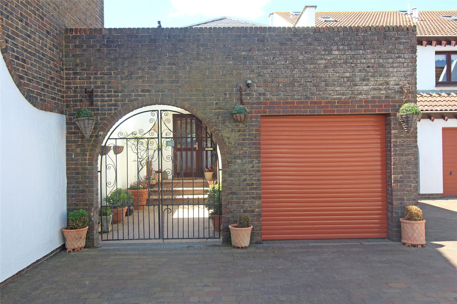 The front is approached by a brick paved driveway leading to the wrought iron double gates of the front entrance approach, as well as leading to the electric roll up storage door with internal space of 9'5" x 4'9" (2.87m x 1.45m), light and power connected