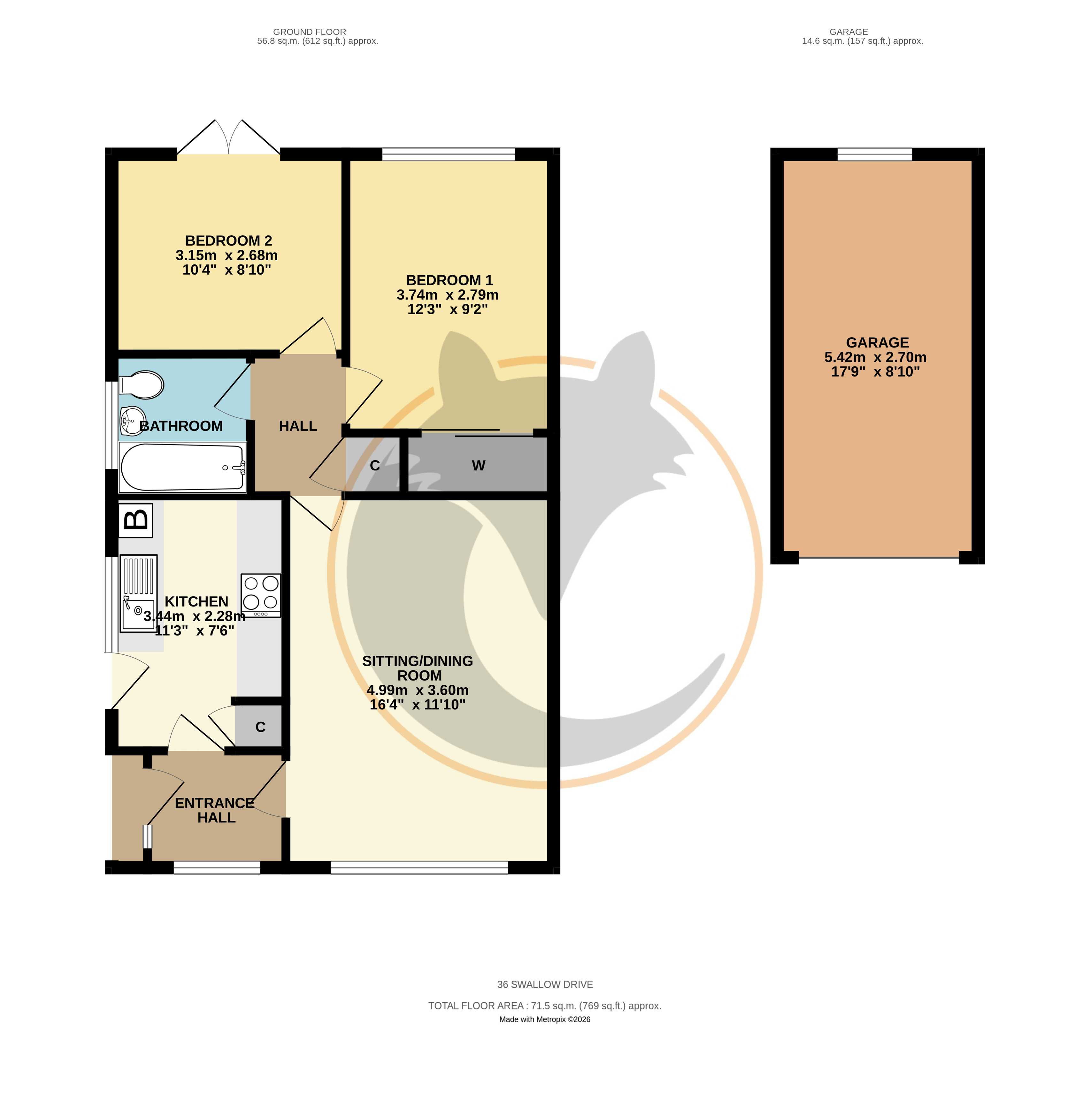GARAGE - 17'9" x 8'9" (5.4m x 2.67m)
