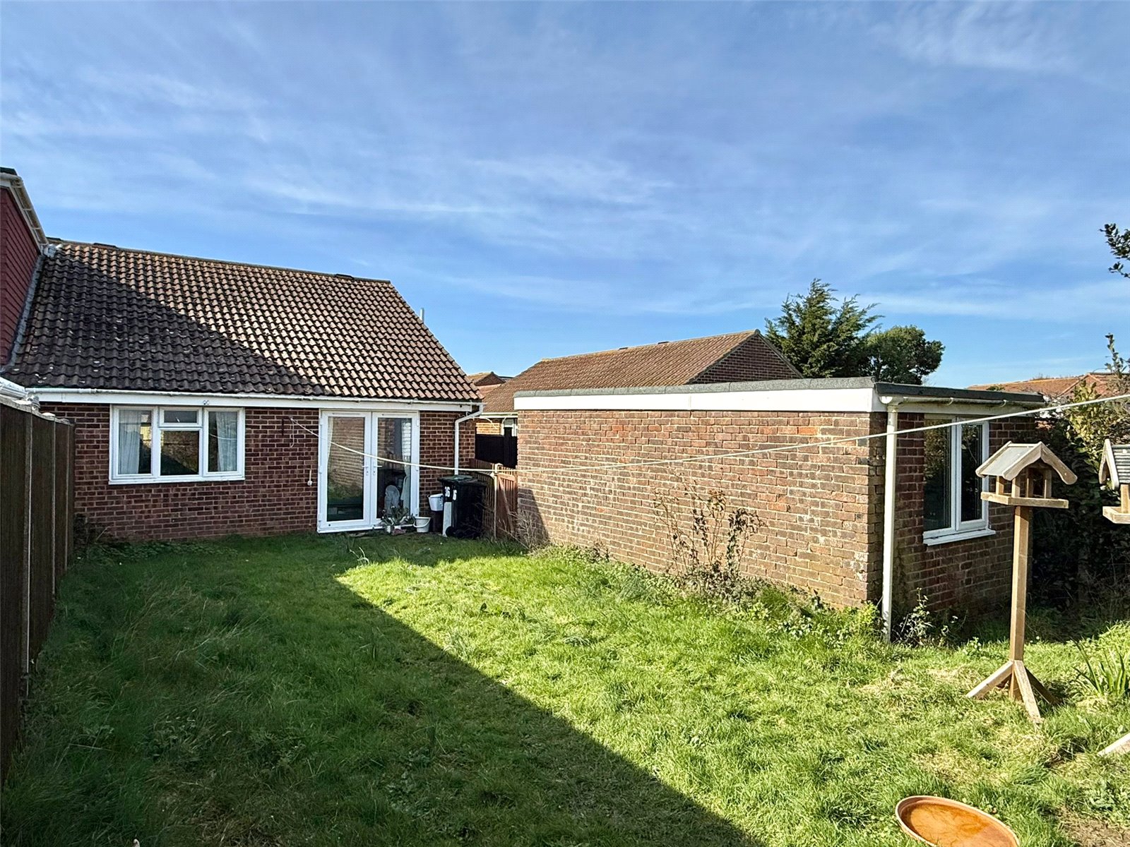 The rear garden is laid to lawn with fenced boundaries, side access gate to the driveway