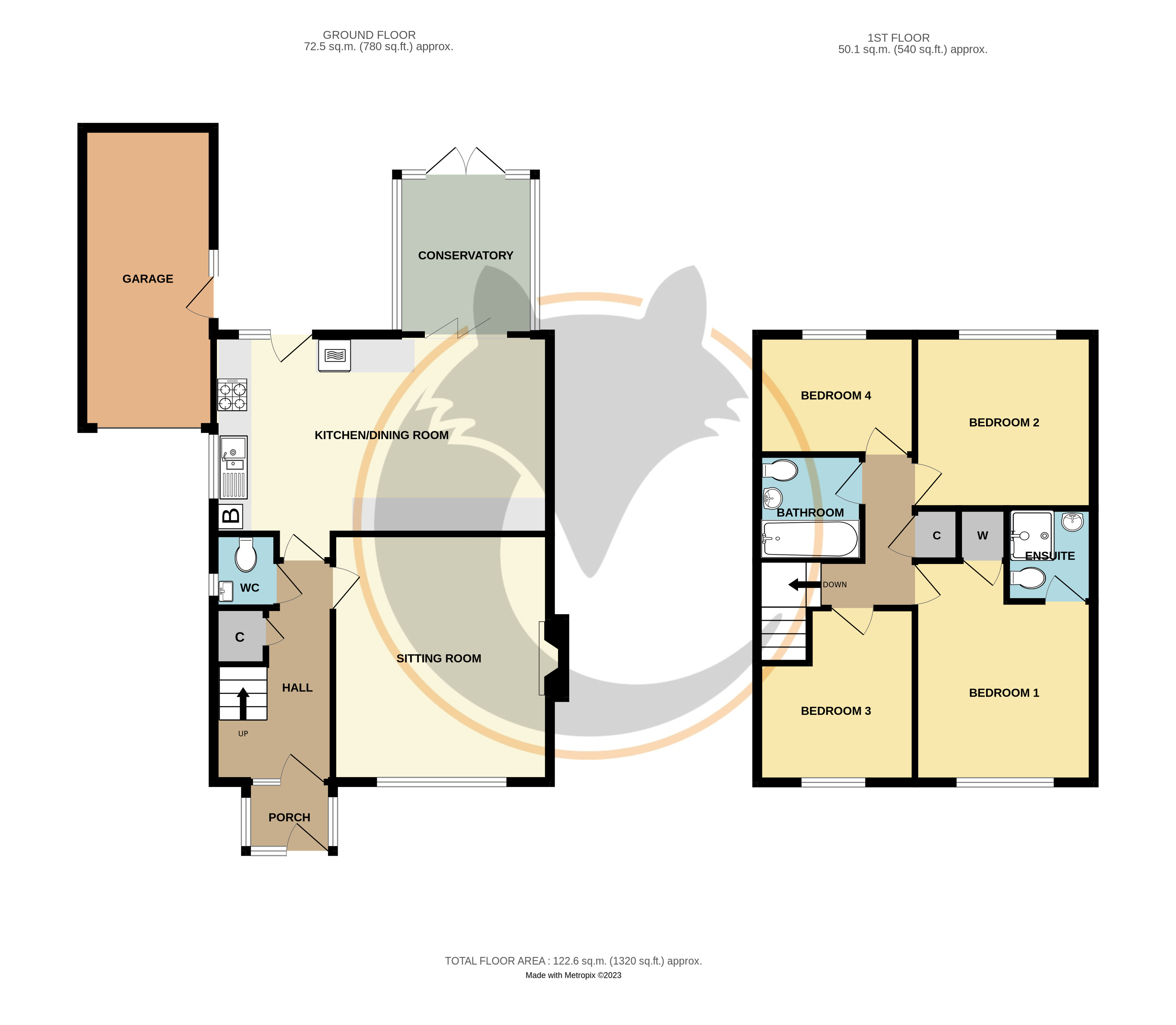 Ground Floor WC: 4'4" x 3'9" (1.32m x 1.14m)