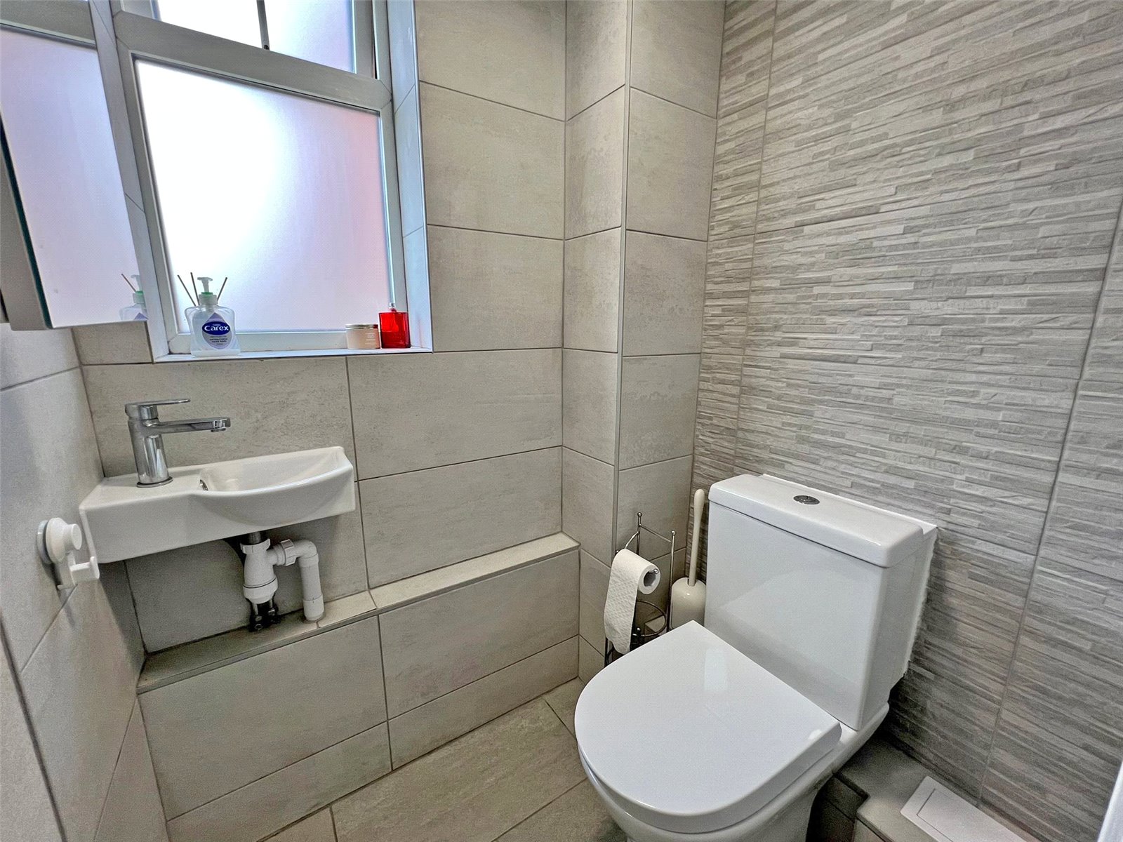 Comprising wc, wash hand basin, tiled floor and walls, obscure UPVC double glazed window, ceiling light point, underfloor heating
