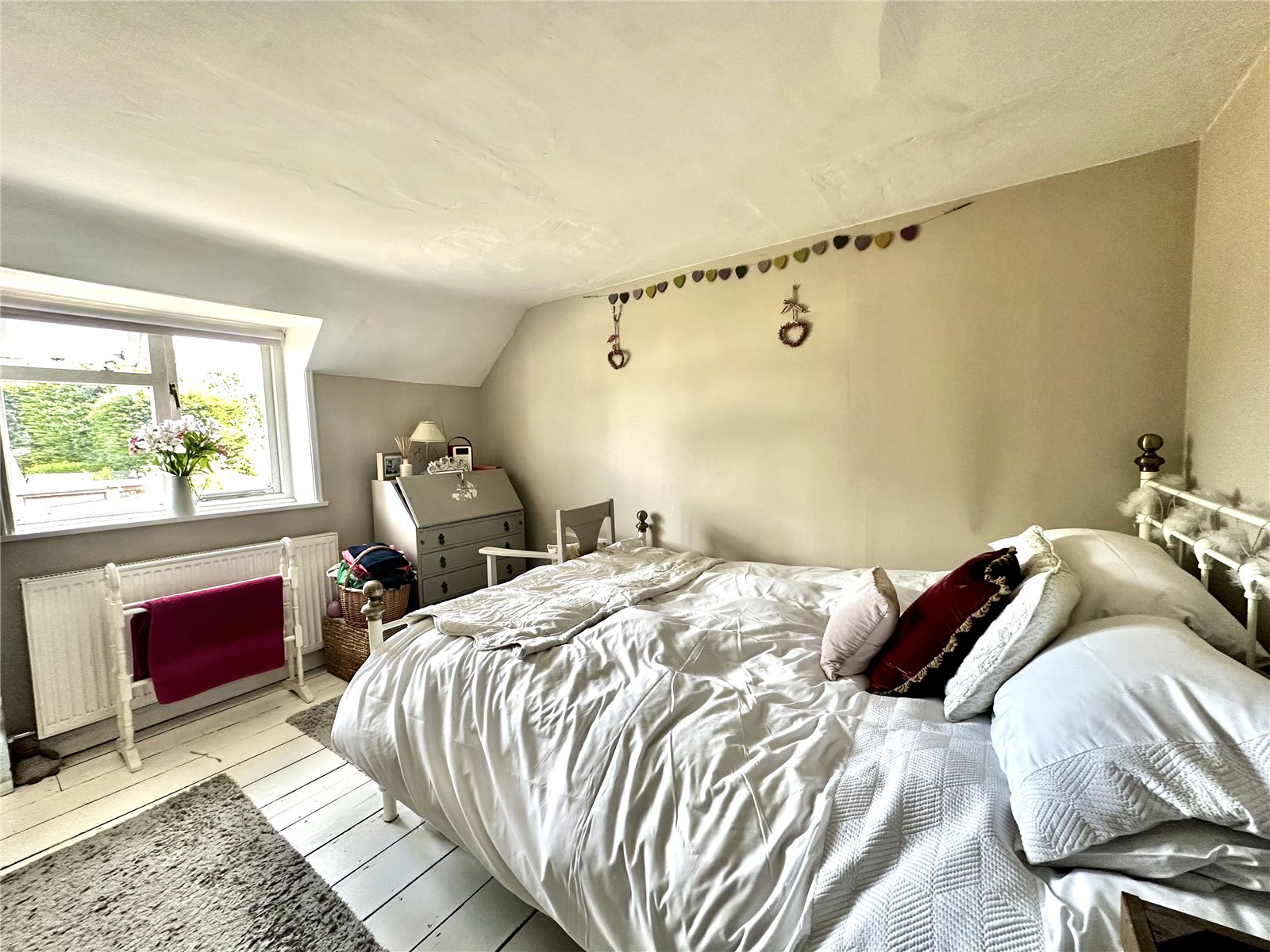 Radiator, colourwash floor, pleasant aspect toward the common