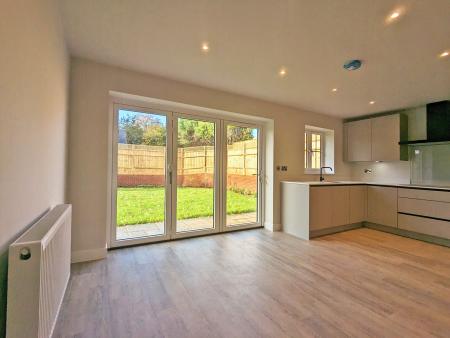 The impressive open-plan kitchen/dining room is fitted with sleek handleless cabinetry, quartz worktops Large windows and bi folding doors ensure a bright, airy environment, ideal for both daily living and entertaining.