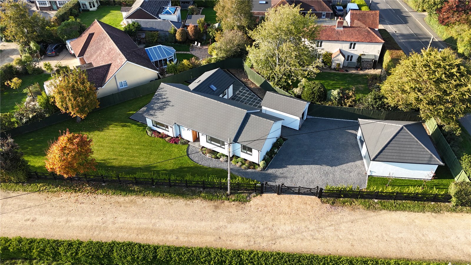 A new and modern desirable three bedroom bungalow finished to a high standard with a landscaped wrap around garden extending to approximately 0.2 acres. The property is located on a private road in a convenient sought after location within easy walking distance to all the high street amenities and convenient access for the train station.