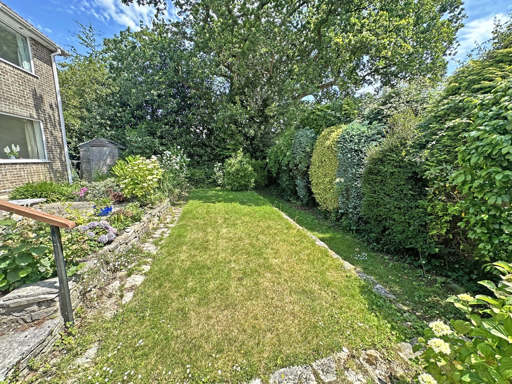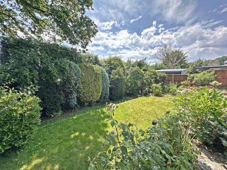 A large side access houses shed and double opening gates lead to the front garden which extends all the way down on one side giving extra space at the front. The driveway provides good off road parking with Lawned area and shrub and tree borders.