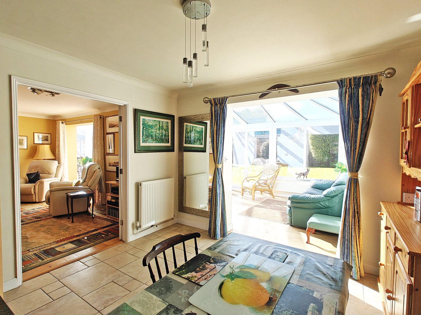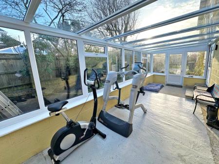 The Garden Room: A wide doorway opens into a second, stunning rear conservatory. This glass-wrapped space acts as a secondary lounge, with sliding doors that introduce the space between the interior and the sandstone terrace to the south west facing garden beyond.