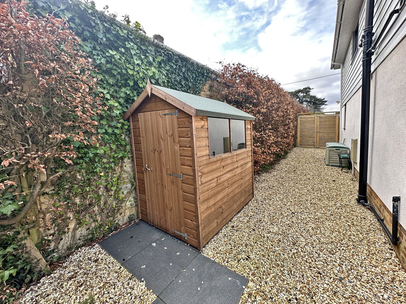 You approach the property via electric double opening gates which lead into the spacious and attractive shingle driveway providing good off road parking, there is an area laid to lawn and further hedging providing good privacy from the road.