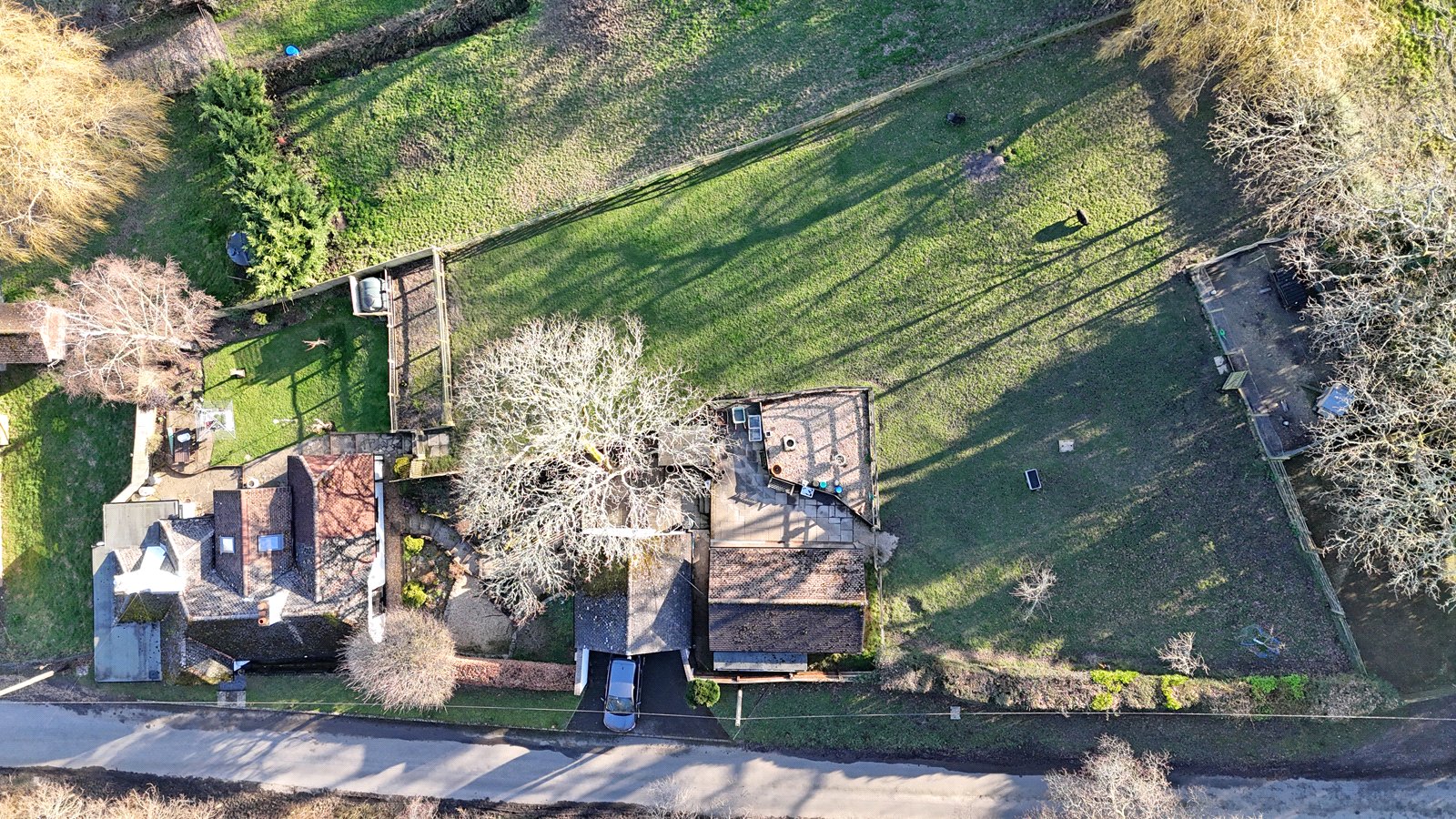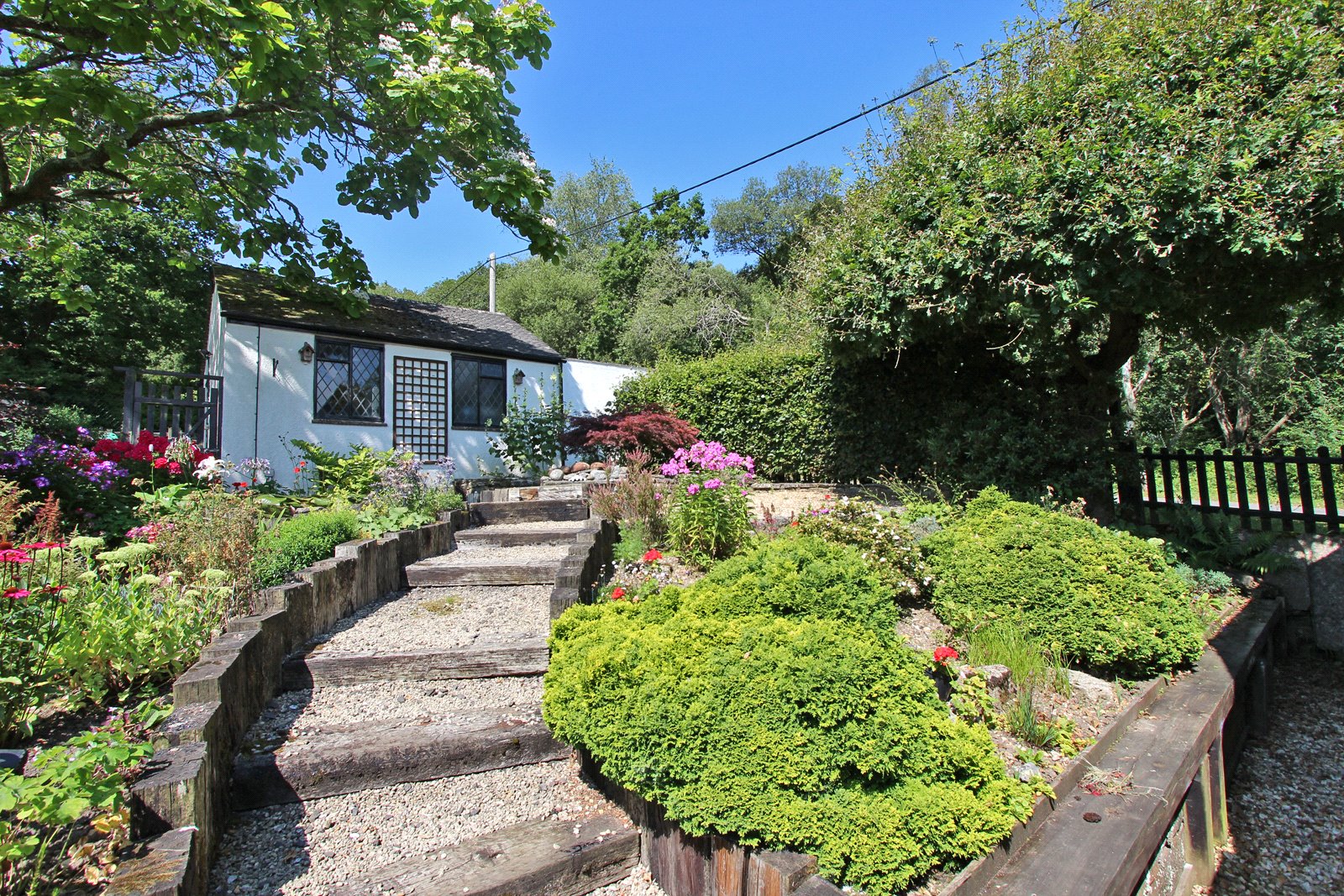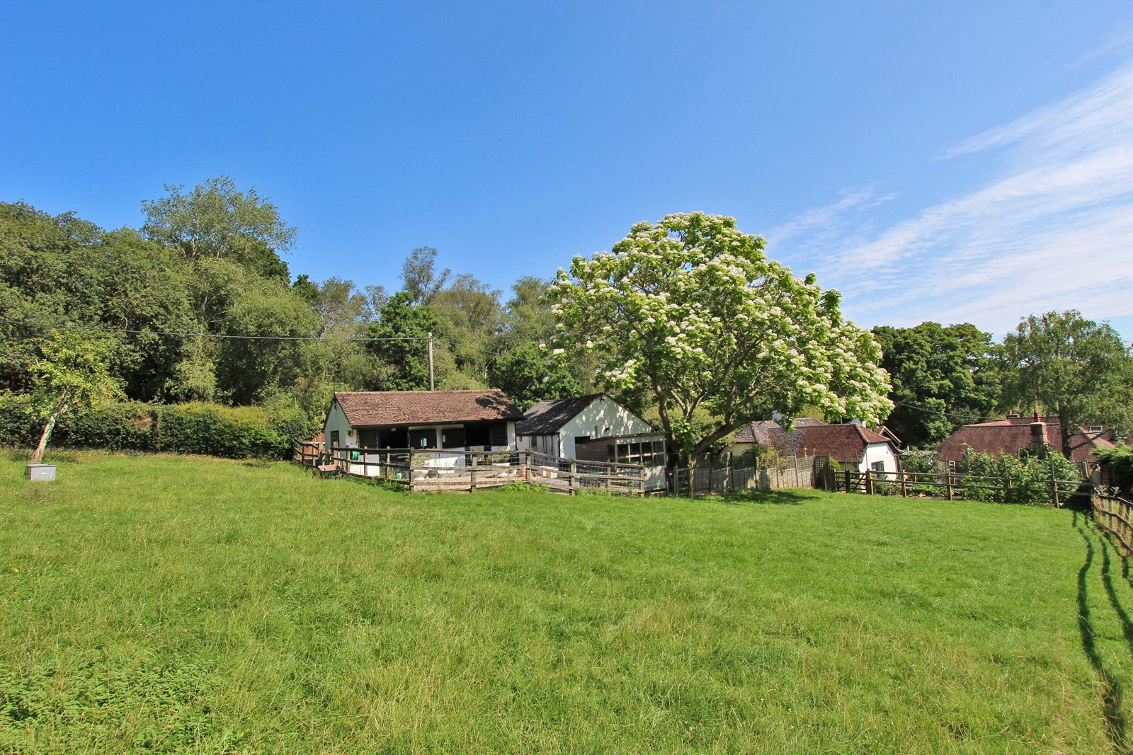 Pedestrian gate to front opens to path which leads to gate giving access to side garden which is terraced with steps leading up to the garage. Further gate gives access to the rear garden which is laid to lawn with both paved and decked sitting out areas. Well stocked border. All enclosed by fencing. Gate gives access to small paddock with fenced vegetable patch to one side. Well fenced chicken run and five bar gate opening to the good size driveway with COVERED LOG STORE.