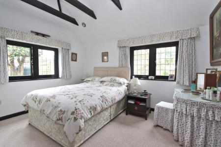 Incorporating built-in wardrobes. Radiator. Vaulted ceiling with beams and recessed lighting. Double glazed UPVC leaded windows to side and rear aspects. Latch door to garden room. Door to Jack & Jill shower room.