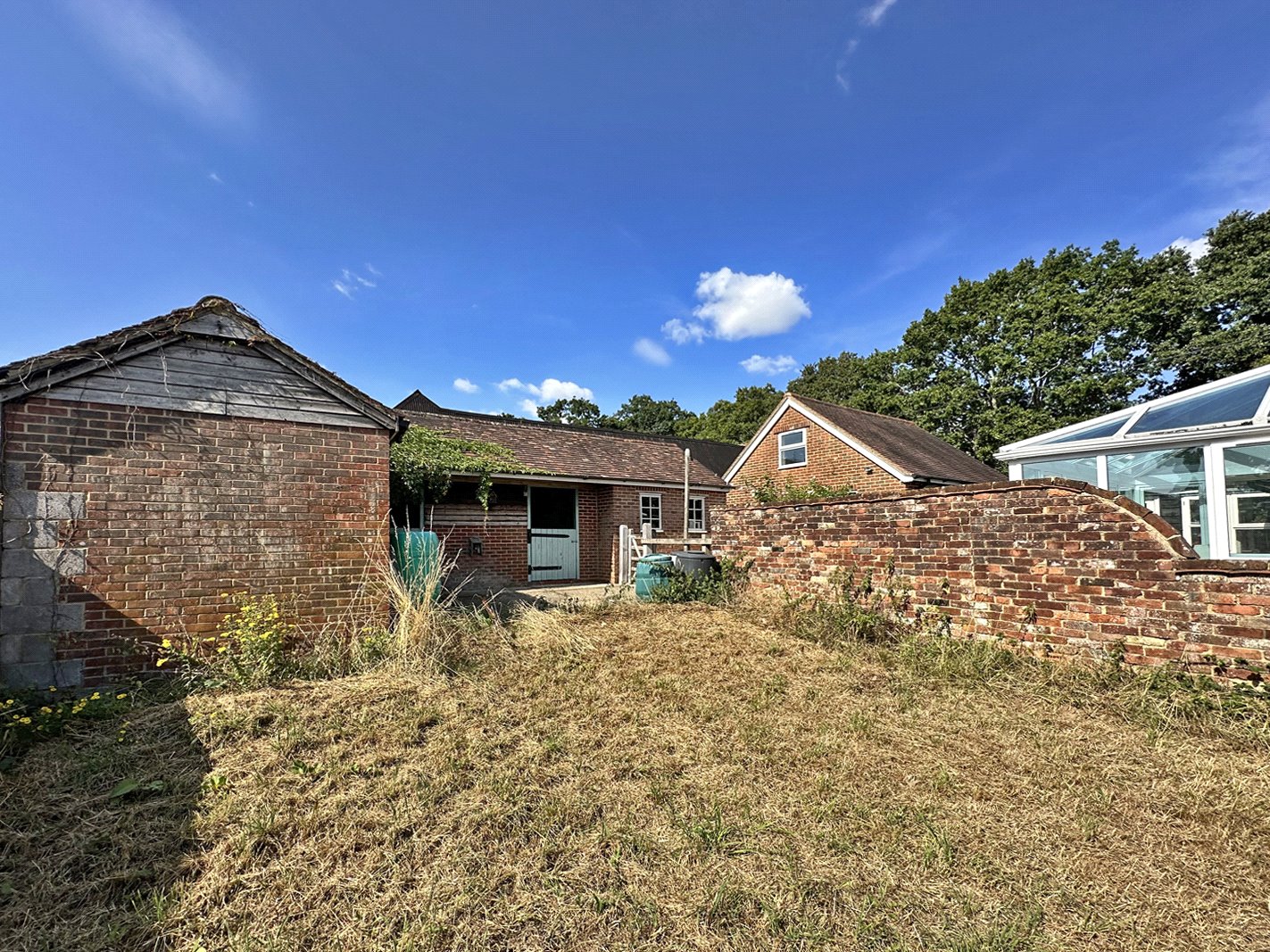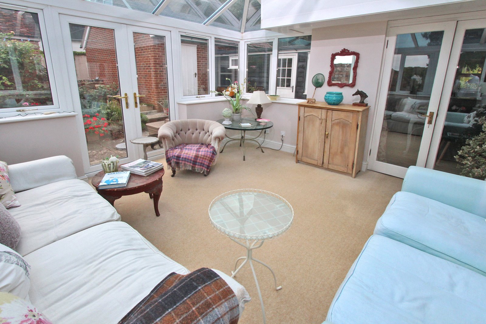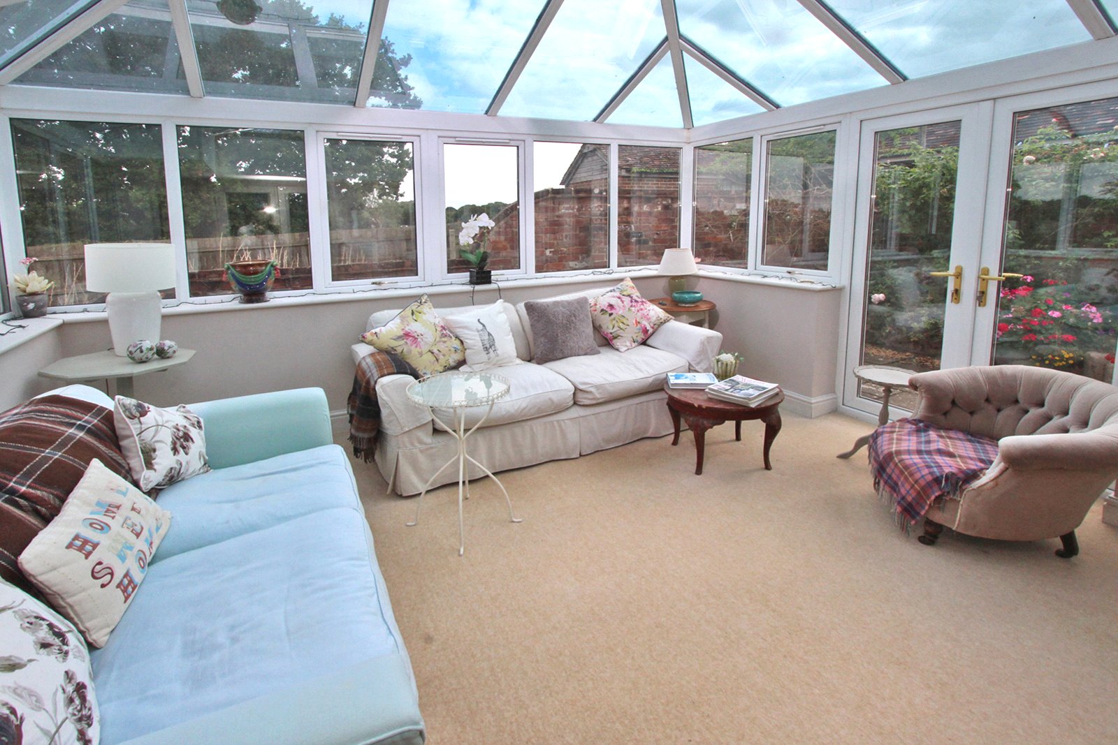 Also accessed from the hallway is the sitting/dining room with brick fireplace and woodburner and double doors open to the conservatory which is of a good size with double glazed pitched roof and double doors opening to the patio.